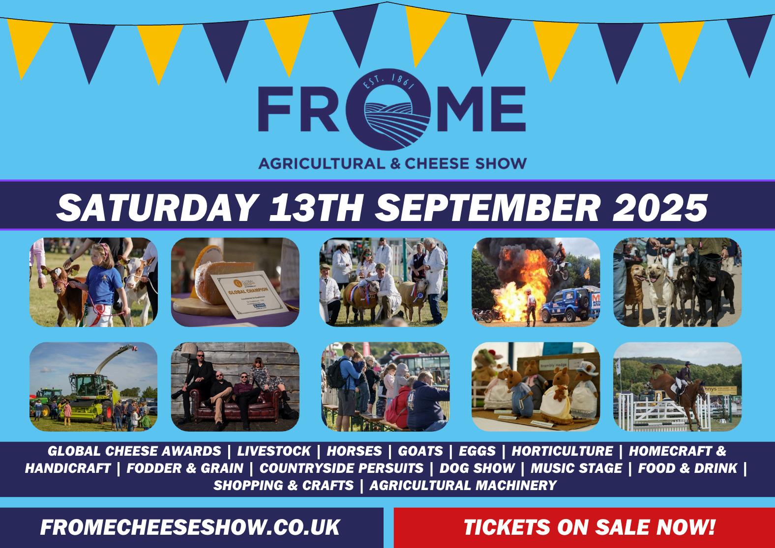 Frome Agricultural & Cheese show always rounds off the summer in style and we are delighted to have their support and to feature what’s on offer this year