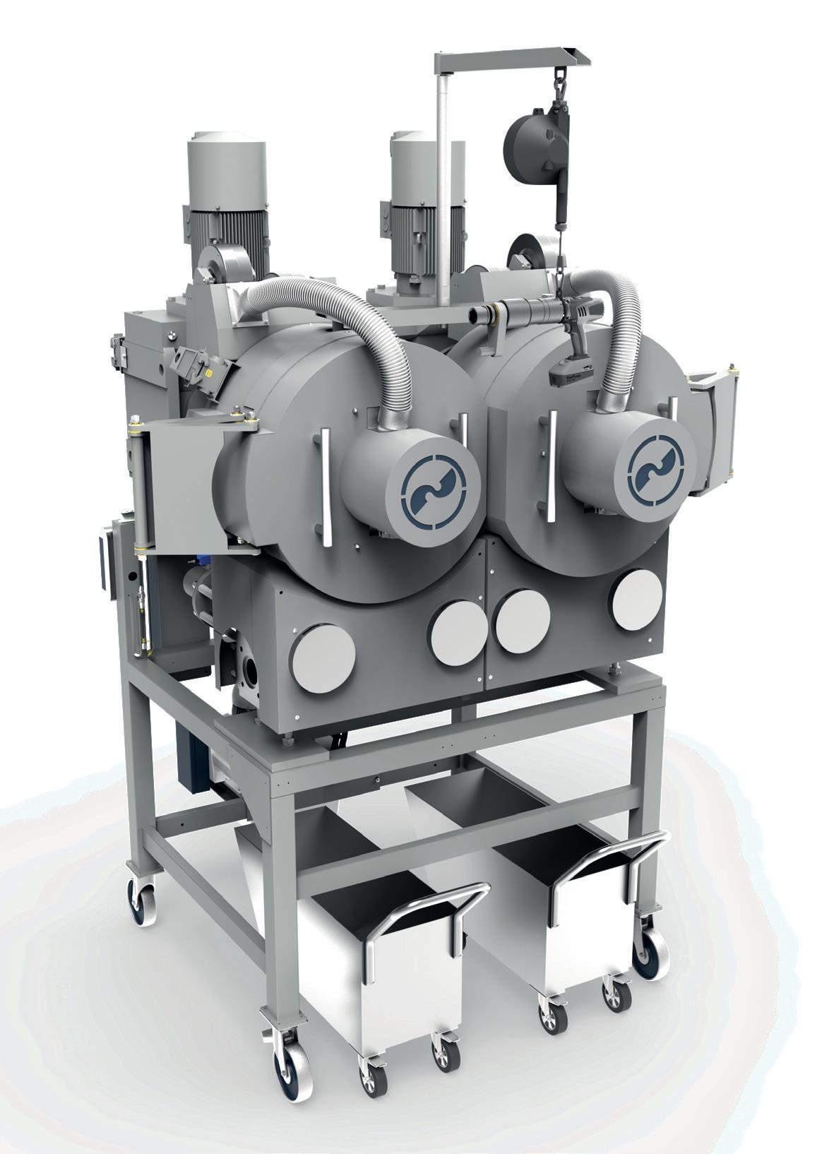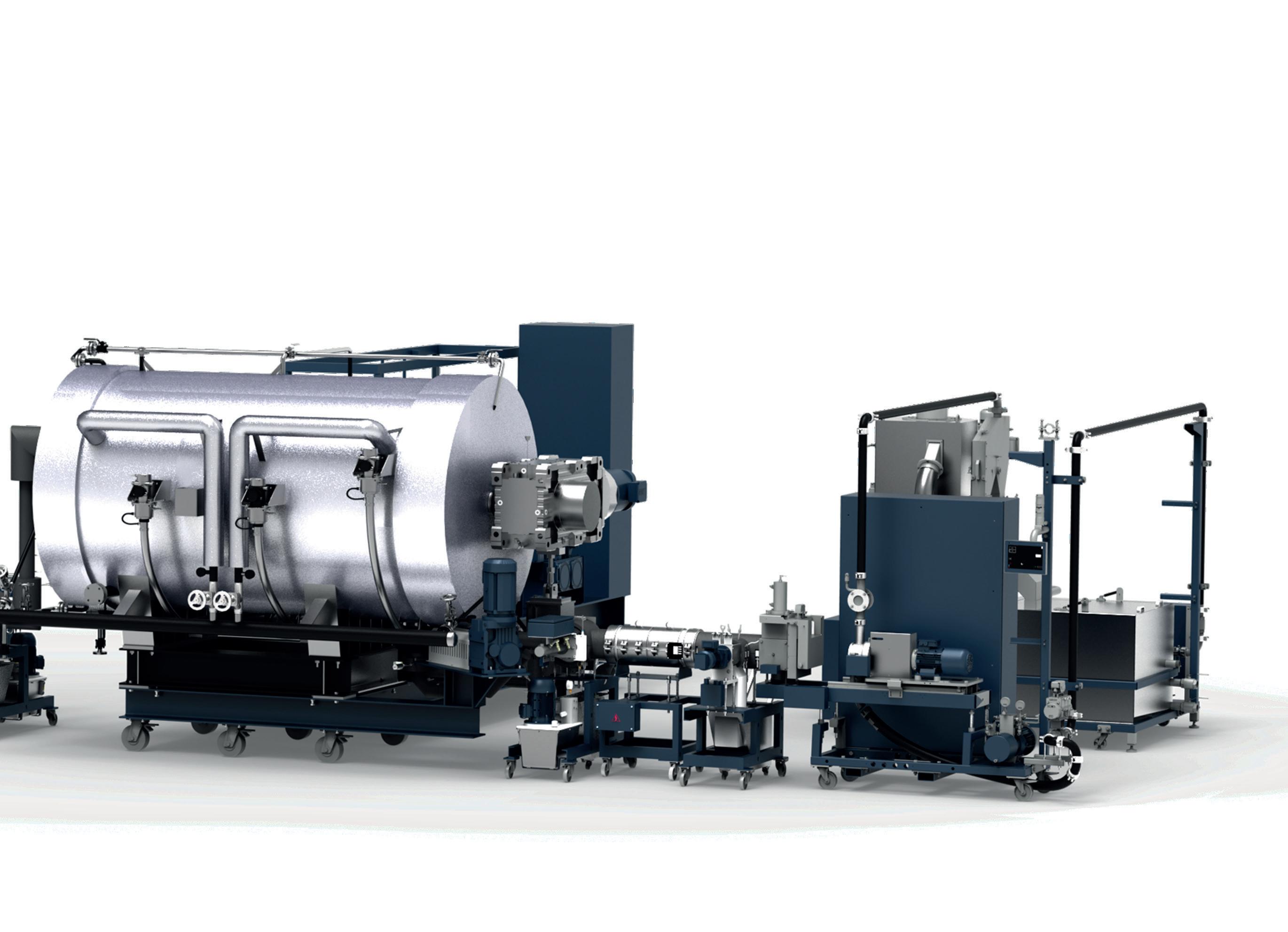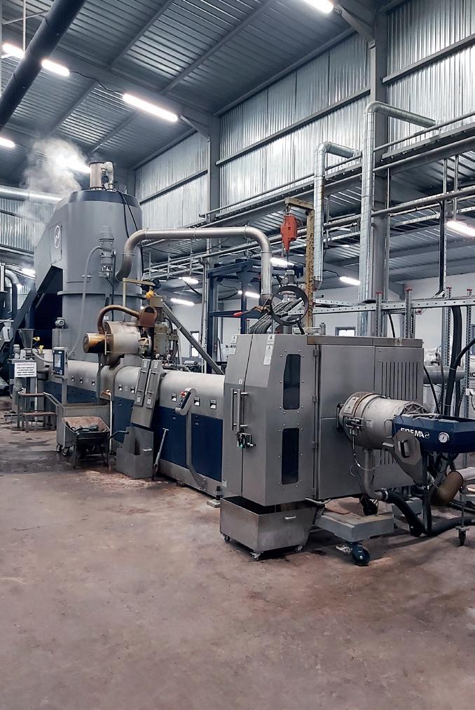 extruder system with double filtration, which is in a class of its own when it comes to recycling heavily contaminated, damp material that would otherwise be difficult to process.