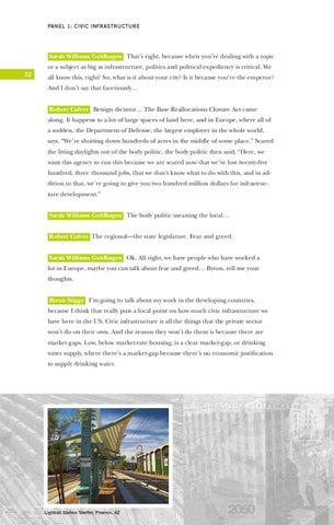 Sarah Williams Goldhagen That’s right, because when you’re dealing with a topic or a subject as big as infrastructure, politics and political expediency is critical. We 22