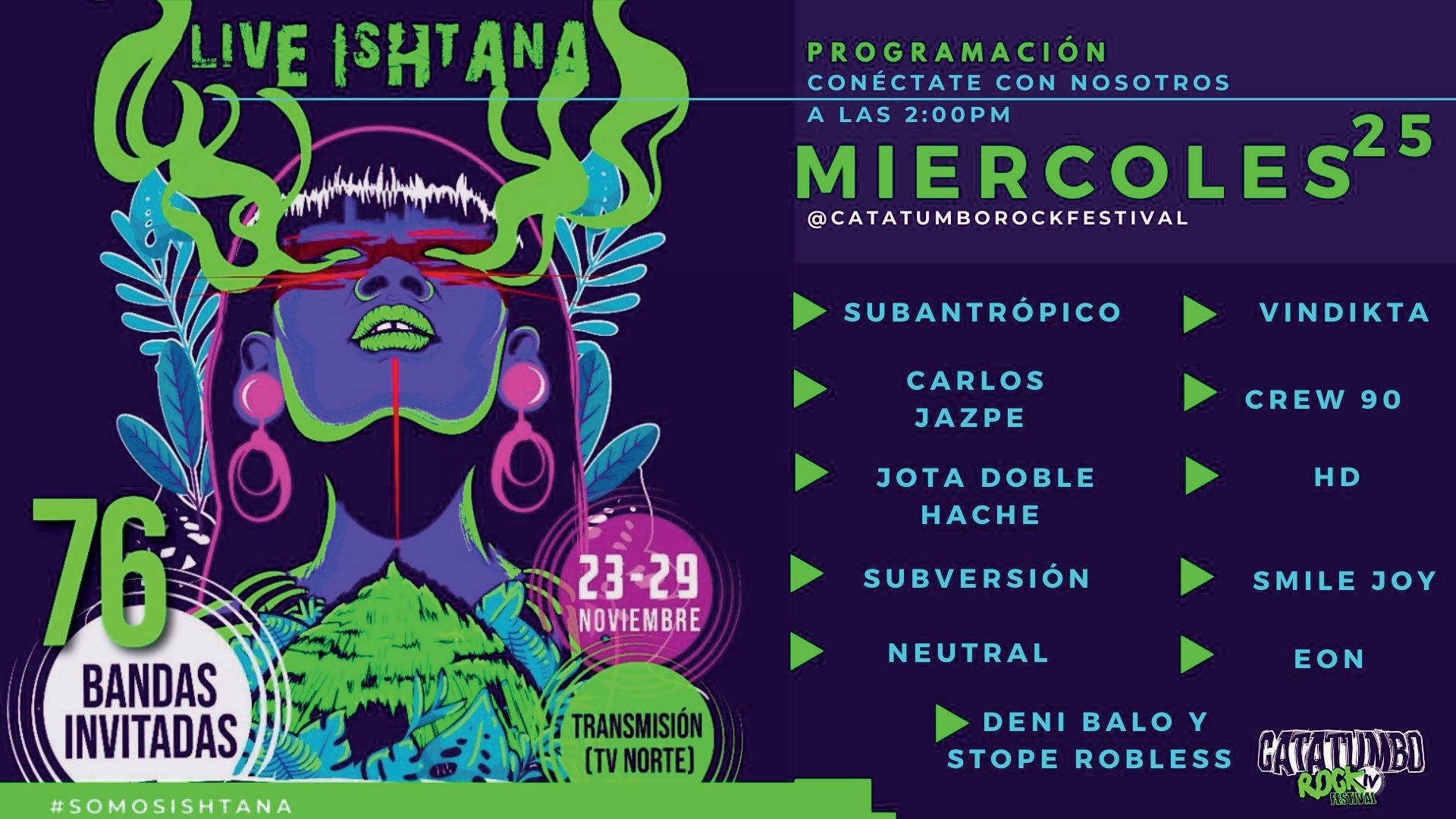 Durante la pandemia, la región del Catatumbo en el Norte de Santander desarrolló Catatumbo Rock Festival Live Ishtana, concierto transmitido por medios digitales y redes sociales con bandas de distintas zonas de Colombia, asimísmo, de distintos géneros.