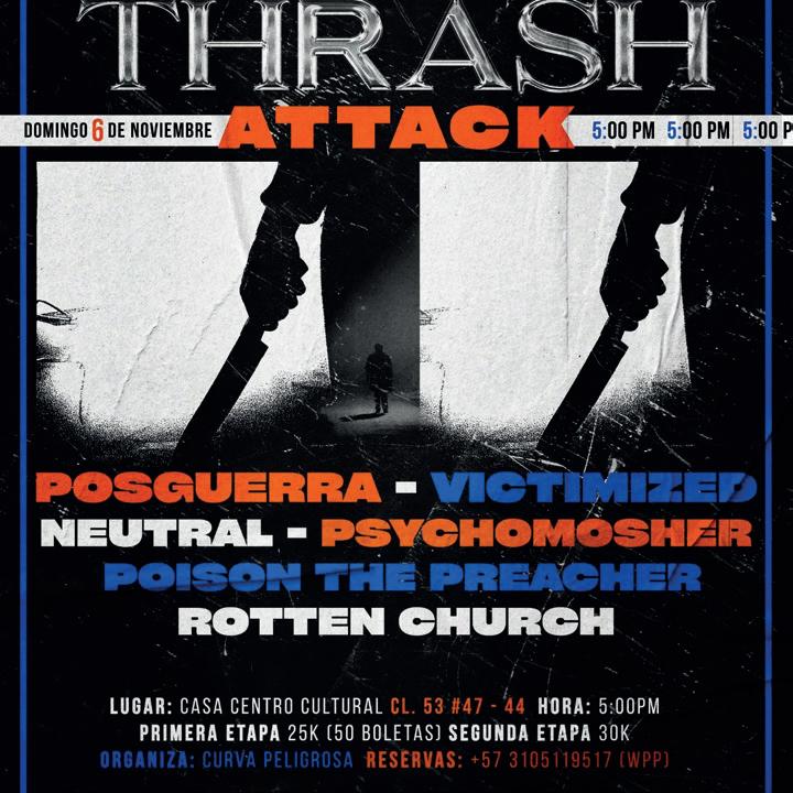 Concierto autogestionado que contó con artistas invitados de Bogotá como Psycho Mosher, Poison the Preacher y Victimized, además de las leyendas antioqueñas del thrash Metal Posguerra.