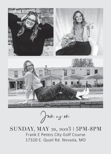 HUGE 4 FAMILY SALE 716 N. Main Thrus. May 2nd, Fri. May 3rd 8-5 Sat. May 4th 8 to ? Cookie jars, Pyrex & Corning ware, Tupperware, Tools, Coach & Myra Purses, Linens, Indian Decor, Books, Cookbooks, Vintage Broaches, Turquoise Jewelry, Hamilton Jewelry, Gold Jewelry, Lots Children & Adult Clothing, Housewares, CD’s DVD’s, Womens Miss Me, Rock Rival & Cowgirl 3 to 39, Lot of womens small to large dresses, & dress clothes, Pocket Knives, lots of misc. YARD SALE May 3rd & May 4th 8AM-6PM Each Day. 1112 S. Adams Nevada, MO Lots of Miscellaneous Items, New & Used. CONTINUED ON PAGE 7 $$ Call UMC 417-667-5435 for donation times SALE Fri., May 3 • 8-5 & Sat., May 4 • 8-12 NEVADA UNITED METHODIST CHURCH 500 South College, Nevada Enter from the back parking lot. All proceeds go to local and state missions ADVERTISE HERE! Call Today 417-667-3344 or 620-223-2110