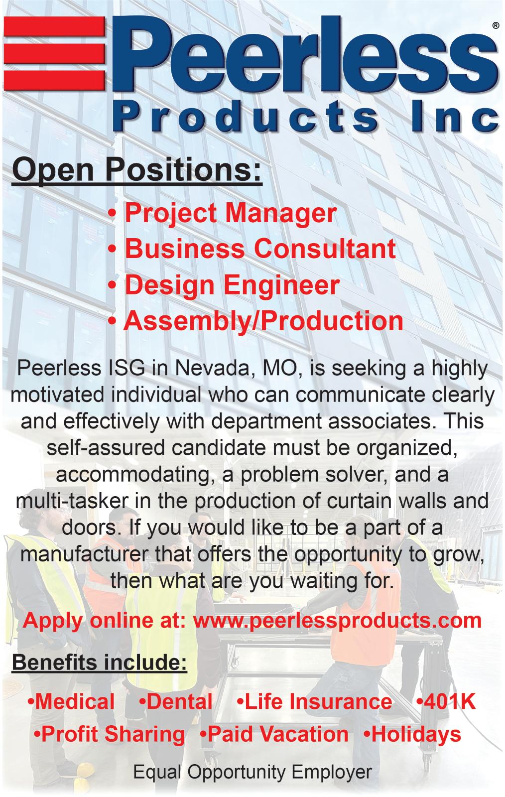 NEVADA EAGLES#3770 is looking for a Full Time and a Part Time Apply in person12-4from 3313 E. Austin • Nevada 417-667-9283 Pay depending on experience.