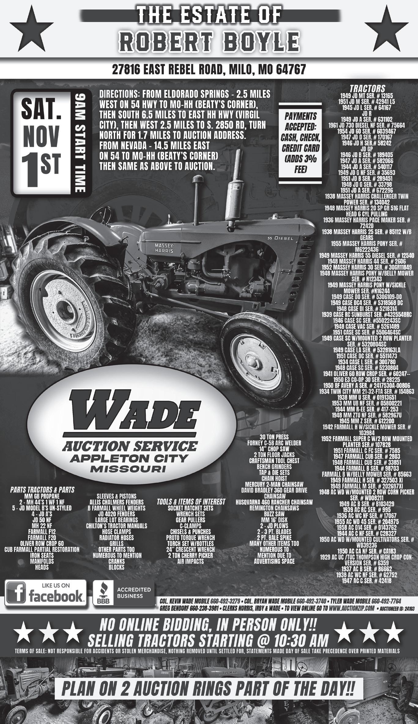 Directions: From Nevada East on 54 Hwy. 7 miles to 2300 Rd. turn South 8/10 mile. Look for signs. Winner will be announced in the November 5th Nevada News.