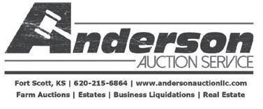 THE NEWS/COUNTRYSIDE, WEDNESDAY, OCTOBER 4, 2023 3 PRINT SHOP NEVADA DAILY MAIL/NEVADA NEWS WWW.NEVADADAILYMAIL.COM From Business Cards, Envelopes, Invoices to Invitations and much more. Visit our website today Do-it-yourself energy. Right in your backyard. If you choose to heat with wood, you know the value of having a readily-available heat source right in your back yard. With the E-Classic’s efficient design and operation, you can heat your entire home, shop and more with up to 70% less wood than other wood-burning appliances. R’NS Farm 941 2400th St. Iola, KS 66749 620-496-2406 *Instant rebate savings up to $750 on select in-stock Central Boiler outdoor furnace models. Savings shown is on an E-Classic model with gas ignition kit option. See dealer for details. centralboiler.com For t Scott, KS | 620-215-6864 | www.andersonauctionllc.com Farm Auctions | Estates | Business Liquidations | Real Estate Jim Martin 620-235-2151 Larry Martin 620-224-4300 620-223-4600 www.fslivestock.com Licensed in Kansas & Missouri. (J.R.) Donald L. Stewart, Jr Owner/Broker Diann Tucker Owner/Broker RESIDENTIAL • FARMS COMMERCIAL • AUCTION 1707 S. National Jamie Harreld Licensed Insurance Broker harreld@earthlink.net 13749 East Mission Road Nevada, MO 64772 Phone 417-321-1204 O ering - Medicare SupplementsMedicare Advantage Plans - Prescription Drug Plans - Hospital Indemnity Plans Licensed in Missouri and Kansas Sales 2nd and 4th Wednesday of the month Nevada, MO Owners: Nathan Collins 620-215-4745 Karrie Collins 620-644-2197 October 11th Tack starts at 5 pm Livestock and Horses 8 pm Like us on Facebook @ Heartland Horse and Livestock Sales LLC for future consignments ADVERTISE HERE. CALL ANDY TODAY! 620-223-2110 2 DAY AUCTION JOHN & ALBERTA SHAW LIVING ESTATE OCTOBER 6TH & 7TH at 10:00 AM 142 W 720th Fort Scott, KS DIRECTIONS: From Fort Scott go south on HWY 7. 720th is 1 mile south of the Bourbon/Crawford Co. Line. Turn west on 720th. Go 1/8 mile. Location on north side of road. WATCH FOR AUCTION SIGNS. TERMS: Bank letter of guaranteed funds required if bidding on any equipment or buying in large quantities. Cash or good check. All items must be paid for and removed day of auction. All items sold AS IS to the highest bidder, come prepared to buy. Not Responsible for accidents. AUCTIONEER: Lance Anderson 620-215-6864 ASSISTANT AUCTIONEER: Mike Lauber 417-439-0328 AUCTION CONSULTANT: Jon Prideaux 620-231-7494 DAY 1 Friday, October 6th at 10:00 AM TRACTORS, IMPLEMENTS, SKID LOADER, HARLEMAN TREE SAW, DUMP TRAILER, TOOLS, WELDERS & MUCH MORE DAY 2 Saturday, October 7th at 10:00 AM GUNS, AMMO, RELOADING SUPPLIES & GUN RELATED ITEMS. • Land Clearing • Rock Hauling • Pond Cleaning • Top Soil www.marber yconcrete.com 620-223-5590 The Nevada Daily Mail/Fort Scott Tribune offices will be CLOSED on Monday, October 9, 2023. The Nevada Daily Mail will not publish on Tuesday, October 10, 2023