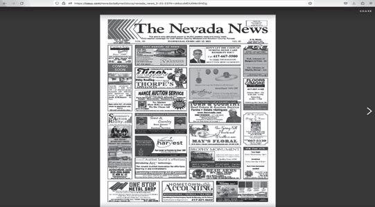 July 10th issue of the Nevada News/Fort Scott Countryside Display ad copy and classified line ads must be in our office no later than NOON Wednesday, July 3rd
