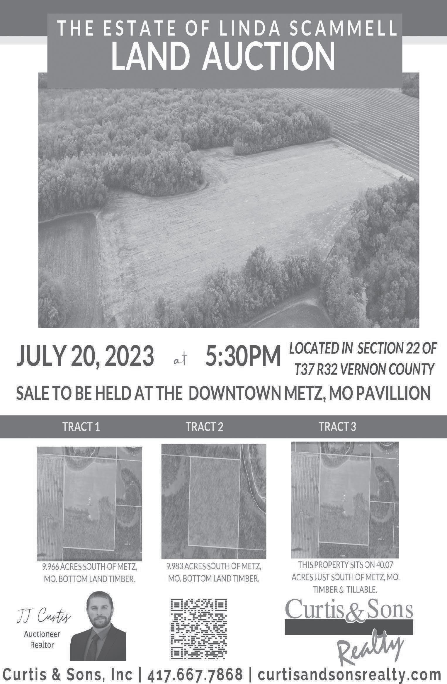 $345,000 Auction July 20th 3 tracts of land located near Metz, MO 9.966 acres m/l, 9.983 acres m/l & 40.07 acres m/l. Call JJ or Ashlee. $127,500 3 bedroom, 3 Bath home with 1 car garage. Call Ashlee