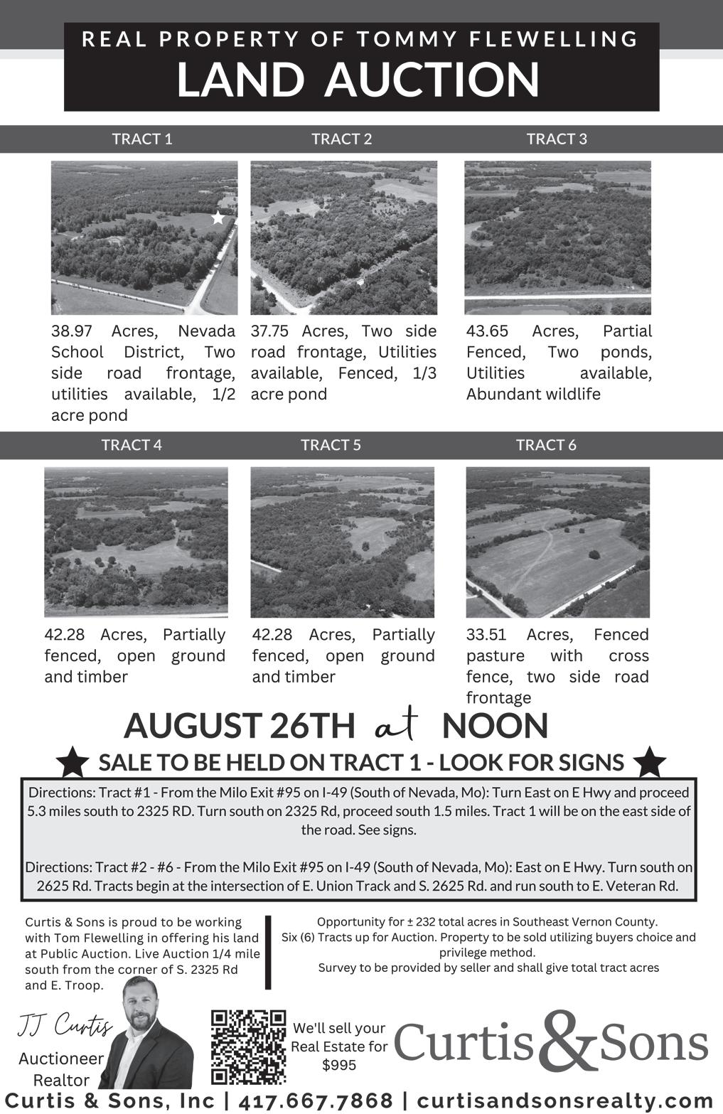 McCAFFREE REAL ESTATE www.mccaffree.com 417-667-3311 112 W. Walnut, Nevada, MO Facebook @McCaffreeRealEstate MLS Mike McCaffree Broker, ABR, ALC, CRB, CRS, GRI, SRES 318 S Elm St Nevada. Hard to find homes in today’s market in this price range. Home has a nice covered front porch that looks out over big front yard 1124 N Ash 41’ x 156’ m/l shaded lot on North Ash. $4500 1114 S. Cedar St. 70’ x 152’ m/l tree shaded lot. $6500 307 E Ashland St. 64’ x 150’ m/l nice building lot. $8000 722 W Cherry St. Beautiful Craftsman style home with just under 3000 sq feet of living space. Home has hardwood floors, deck, det garage and come w/ kitchen appliances and Washer/ dryer. New Price $149,000. SOLD See more listings at www.tncnevada.com 1700 W. Austin, Nevada • 417-667-2966 Real Estate & Auction Service DOUG WORTMAN 417-448-9540 Owner Broker/ Auctioneer JAY WORTMAN 417-365-4721 Agent TROY SCOTTEN 417-448-7163 Agent TAYLOR SCOTTEN 417-684-1224 Agent COLE ABELE 417-684-0881 Auctioneer TOWN & COUNTRY • 1,480 Acres Vernon County 7,000,000 • 440 acres SOLD at AUCTION • 244 acres pasture several ponds fenced and cross fenced 976,000 278 acres M/L April 29 -- 2023 South of Golden City Mo 4&1/4 miles on HWY 37 SOLD AT AUCTION 1,247,056 314 acres SOLD AT AUCTION 5-20-23 1,554,300 Upcoming ABSOLUTE AUCTION 205 Acres west of Lamar Mo 205 acres Barton County Mo. SOLD AT AUCTION 7,400
