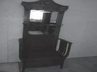 Saw Oak Bench Hall Tree W/Lg Beveled Mirror & Ornate Carvings, Rare 1800’s Oak Slim Bench Hall