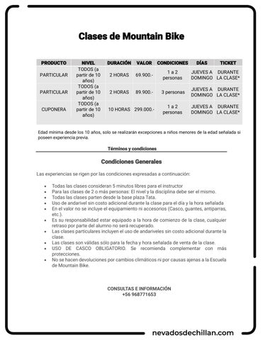 • No se hacen devoluciones por cambios climáticos ni por causas ajenas a la Escuela de Mountain Bike.