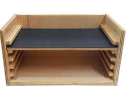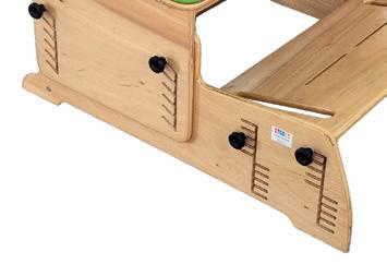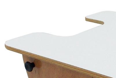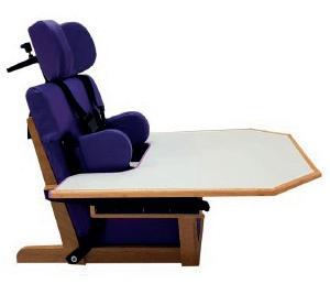 O Adapt Corner Plus proporciona um posicionamento adequado à criança com necessidade de controle de cabeça, pescoço e tronco. Seu encosto em formato triangular limita a região escapular e a extensão dos ombros, estabilizando a criança que apresenta movimentos involuntários e instáveis e permitindo que os braços e as mãos fiquem livres para exploração lúdica. Produzido em compensado laminado tipo exportação, o produto acompanha mesa revestida com fórmica e regulagem de altura.