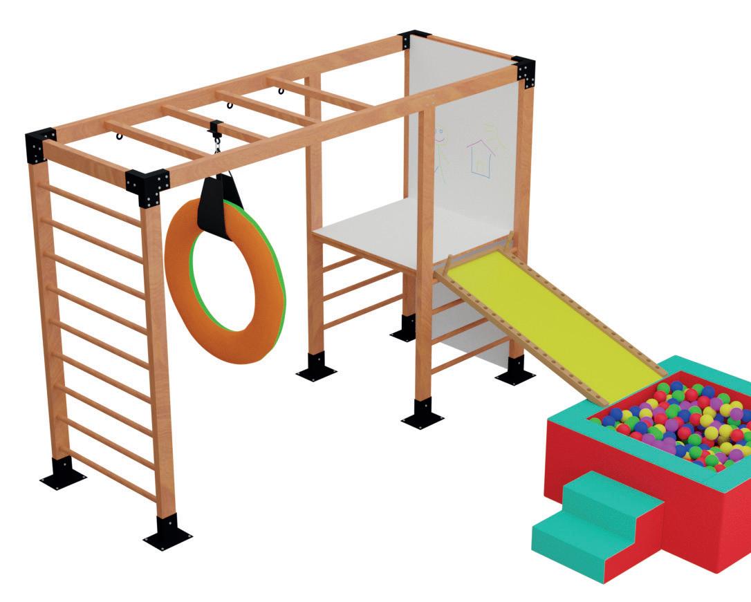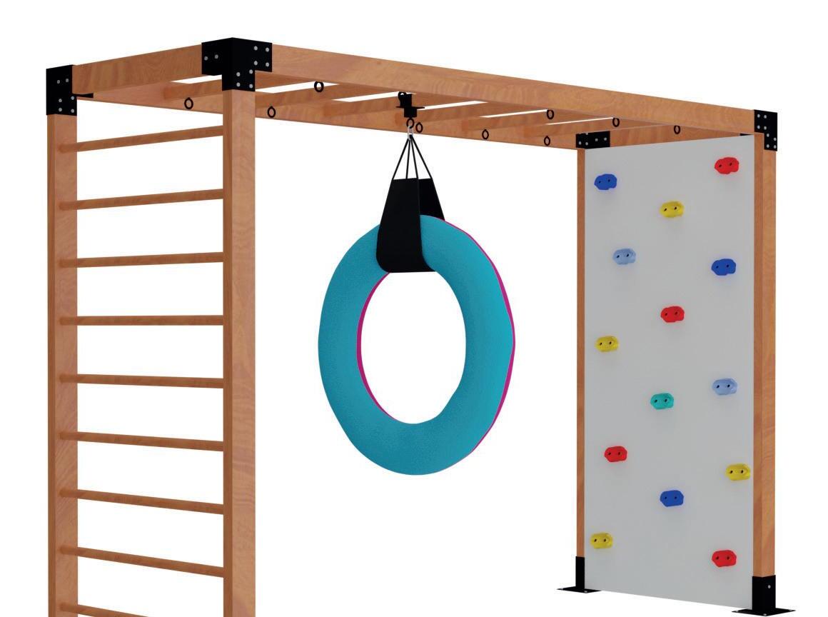 Ela permite que você escolha entre Parede de Escalada, Escalada de Cordas, Espaldar, Lousa Branca (magnética) e Ilha nas laterais da estrutura. Além de ser compatível com toda a nossa linha de equipamentos suspensos, ela também pode agregar outros recursos, como a Rampa e a Escada para Espaldar.