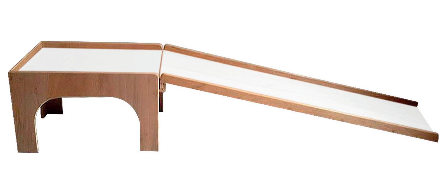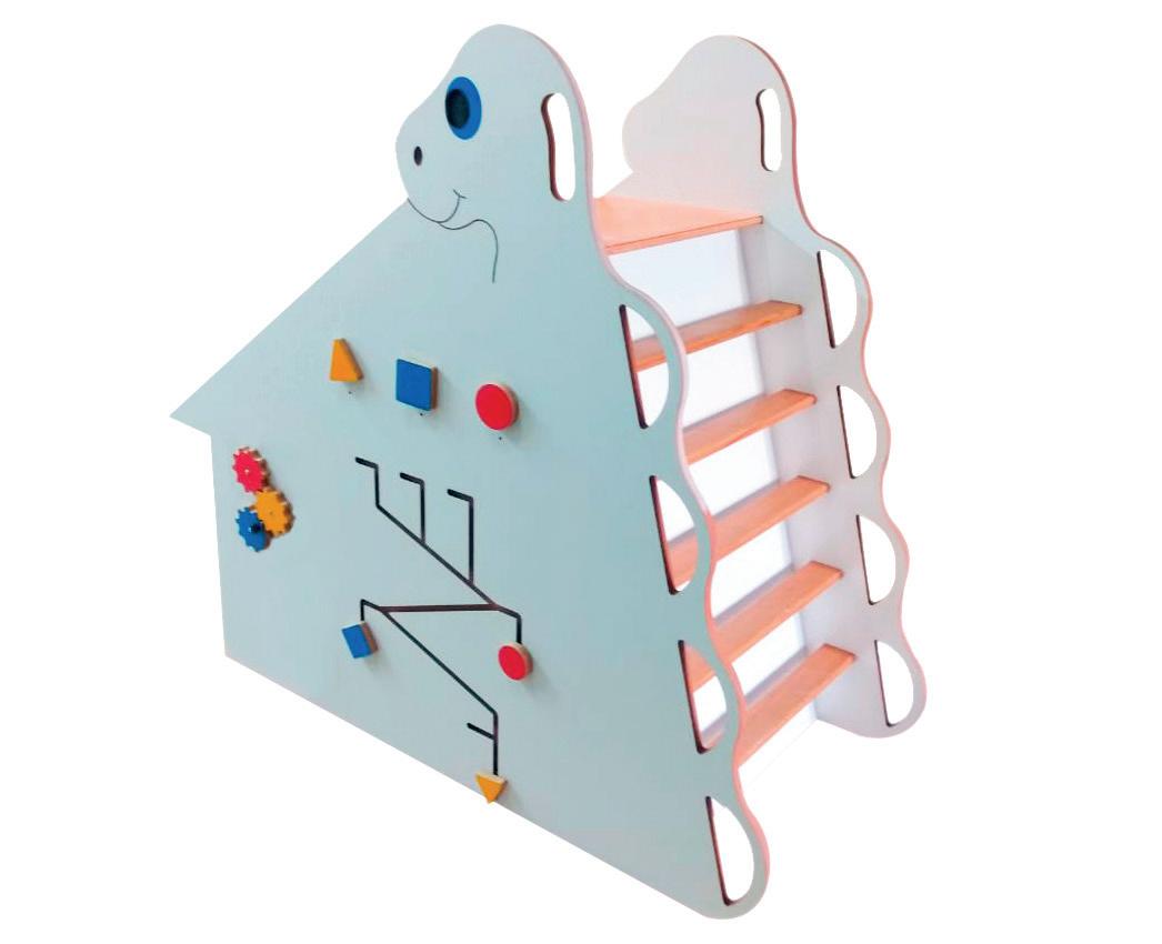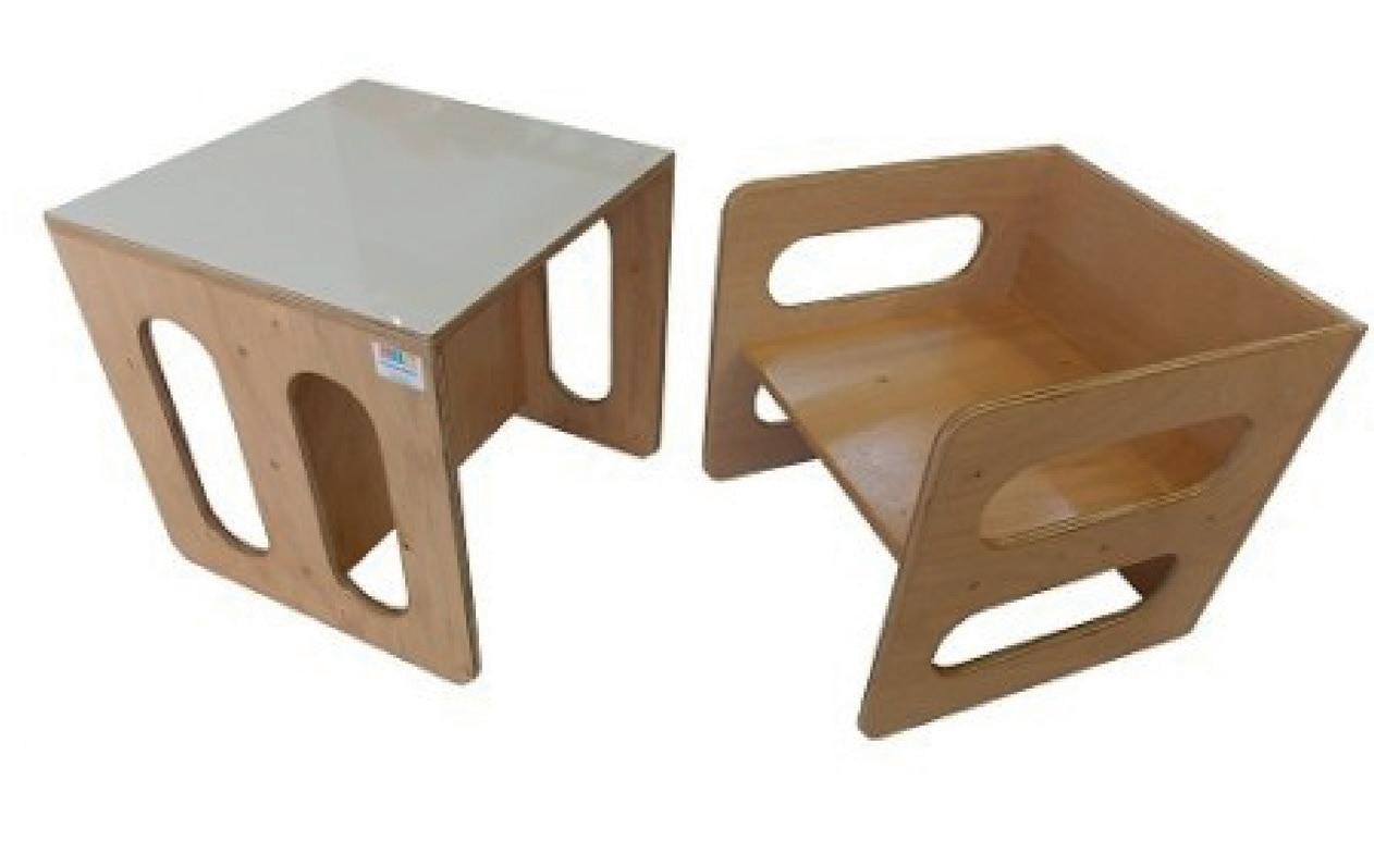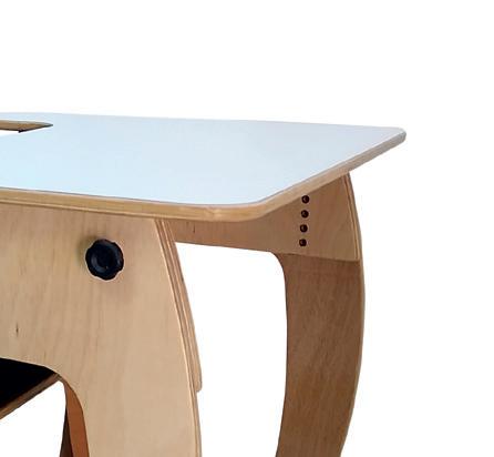 Produzido em compensado tipo exportação com acabamento em verniz. Acompanha mesa acoplada que estimula a realização de atividades manuais e lúdicas.