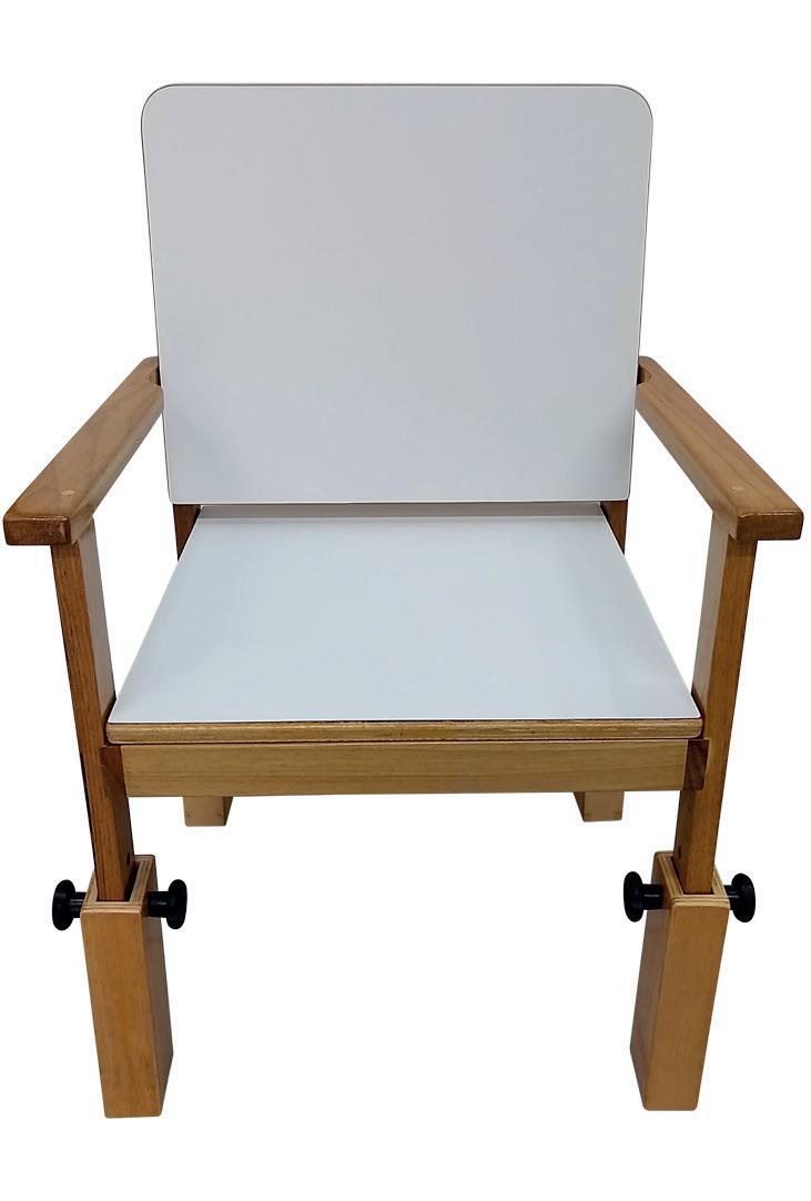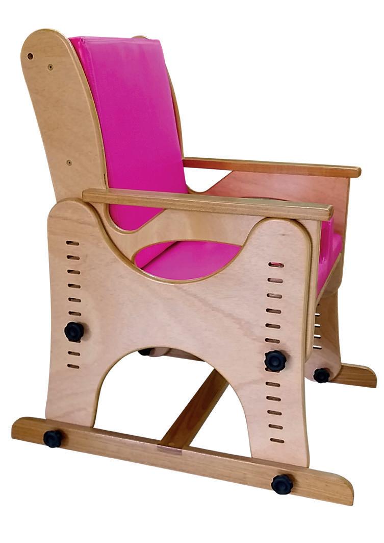 A Adapt Multi foi desenvolvida pensando em maximizar o conforto e o bem-estar da criança. Conta com regulagem de inclinação simultânea no encosto e no assento e já contempla a adequação postural completa e personalizada. Produzida em compensado laminado tipo exportação, possibilita o uso de mesa acoplada ou estacionária.