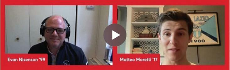 Director of Alumni Relations and Giving Evan Nisenson ’99 sat down with Matteo Moretti ’17, whose recent film, “Just Being Here,” is earning several presti gious accolades, including an Honorable Mention in the New Jersey International Film Festival
