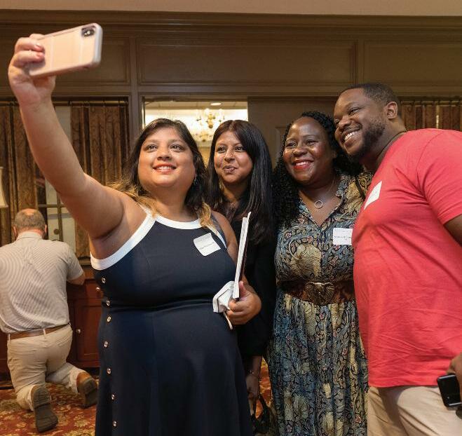 Loren (Weiss) Selig ’87 was delighted to crash a wedding in order to visit with Eric Walker ’87 This is a ver y treasured friendship 11 A group of alumni at Cornell University gathered together for dinner in Ithaca, NY (From lef t to right: Samar th Desu ’19, Gabe Schif fer