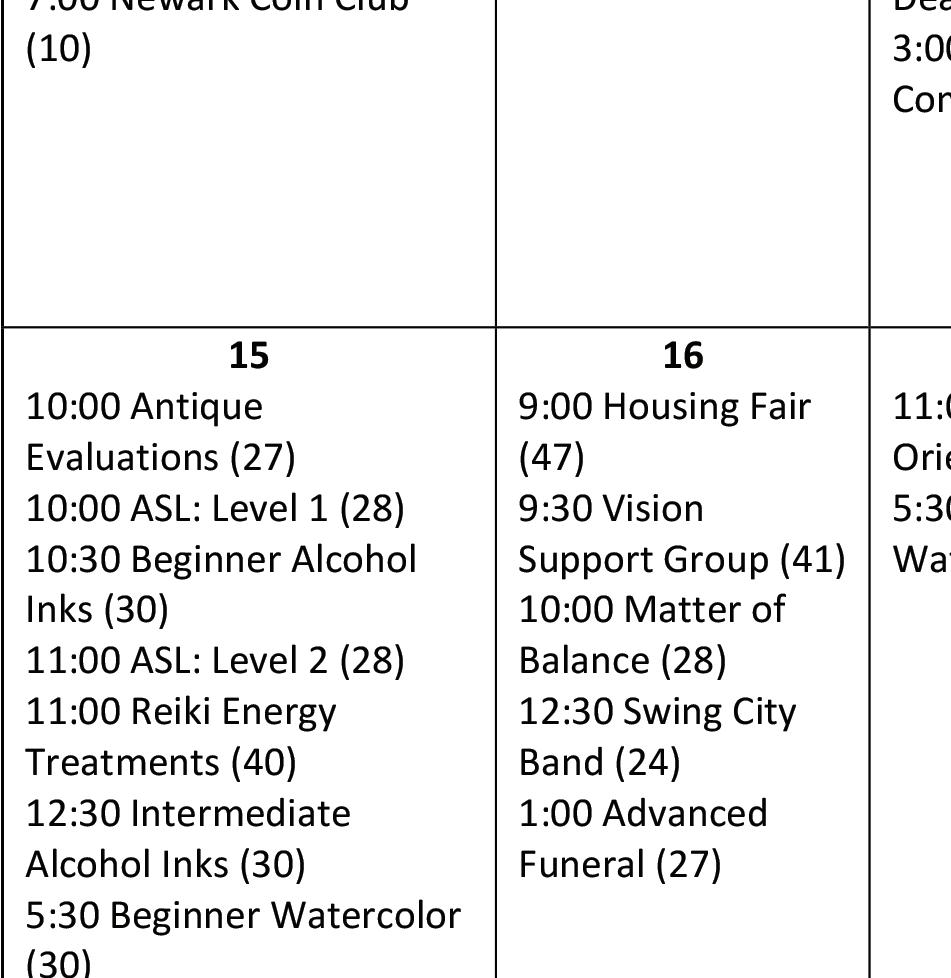 You can also contact Maura at (302) 737-2336 ext. 101 or maura@ newarkseniorcenter.com to sign up or have questions.