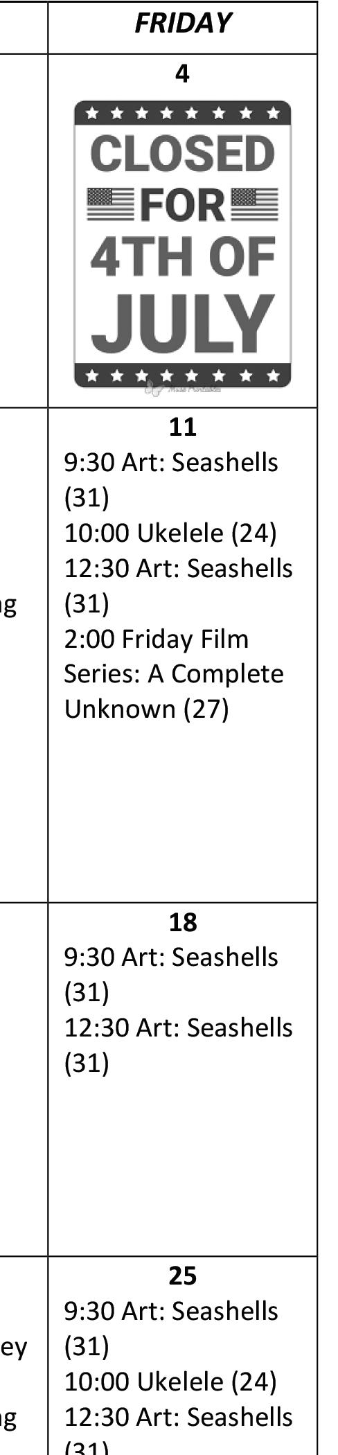 Please Note: Classes listed in blue indicate pool activities Library & Game Room open when the Center is open