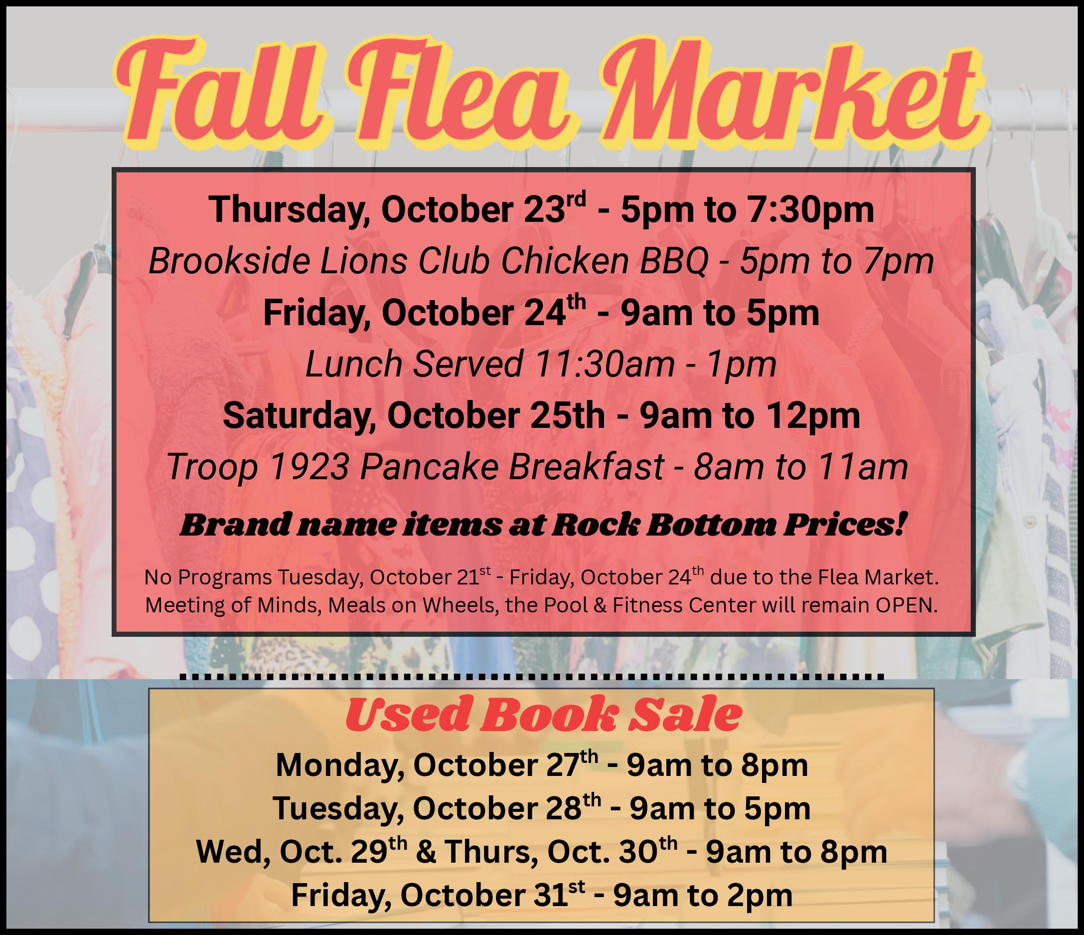 Flea Market Volunteer Orientation will be held on Wednesday, October 15th at 1pm