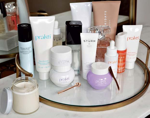 “Because I’m always on-the-go— the salon, house calls, the m, meetings—I tote around a sizable du el bag lled with essentials: m clothes, Olaplex, asthma inhalers, eye-whitening drops, and my daily skin-care regimen, compliments of iS clinical.”