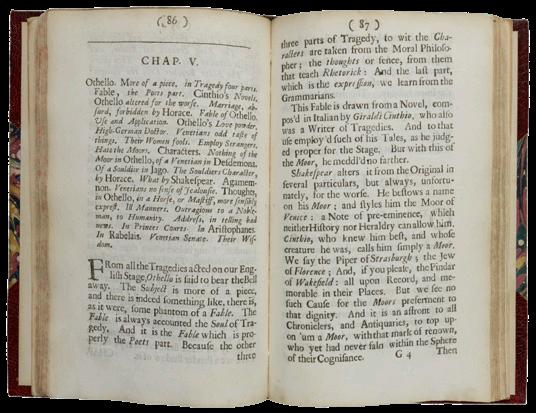 Since Seeing Race Before Race opened to the public, visitors have been drawn to the case featuring William Shakespeare’s Othello and its afterlives. Othello is one of the best-known representations of Blackness in early English theater. The play has long prompted debates about how—and if—Blackness should be performed on stage. As the books we have chosen to accompany the Second Folio edition of Othello suggest, debates about the nature of Othello’s Blackness and heroism have been raging since the play was first published. Seventeenth-century literary critic Thomas Rymer rails against Othello as a sub-par tragedy because Shakespeare deigns to give “the Moor” a name, unlike the Italian source-text, let alone cast him as a tragic hero. Meanwhile, an early eighteenth-century French translation of the play deliberately lightens Othello’s Black skin to avoid offending women in the audience.
