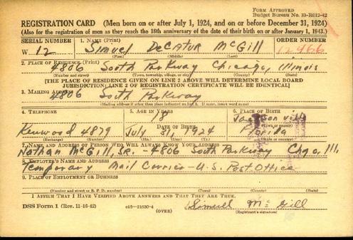 Ayoung African American man in a Navy uniform stands at attention. He looks straight at the camera, his face stoic, his eyes penetrating. A posed salute and the elaborate staged backdrop suggest he stands in a photography studio. A horizontal crease of the blackand-white photo not only reminds the viewer of the materiality of this photograph, which has miraculously survived decades of wear and tear, but also suggests that it was folded in half and held close for safekeeping by a loved one—perhaps in uncertain times of the sailor’s whereabouts or wellbeing. One can imagine a loved one stashing this photograph in a pocket, wallet, diary, or purse as a memento of one American—of many—who participated in the war effort.