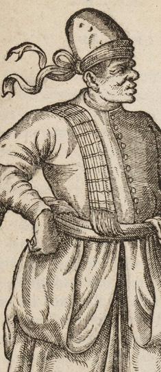 Dürer’s manual is displayed next to Nicholas de Nicolay’s travel narrative of voyages to Turkey—the same work featured on the exhibition’s doors. Printed in 1576 with letterpress and engravings, the travel narrative uses clothing as an example of racial identity. We chose images from Nicolay’s book for promotional materials for the exhibition because the highly illustrated text features a variety of people from different countries labeled with information about their socio-economic backgrounds and religions.