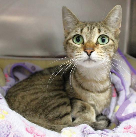Tipsy is dainty, playful, gentle, laid back, and is very loving. Her big green eyes and her little face make her precious. She is almost two-yearsold, spayed, and her vaccinations are up-todate. Tipsy may be named “tipsy” because she likes to play in her water bowl. If you want her undivided attention, she loves dangly toys and laser pointers. She is very comfortable home with other cats, and dogs. Make Tipsy part of your home.