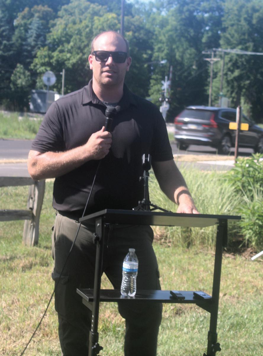 “It could be an autobiography or Shakespeare or the thousands of plays and scripts that he read over the years,” she said in front of a crowd of family and friends at the flagpole at New Buffalo Township Library Friday, June 27.