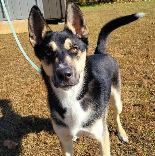 Brody is a 55-pound Husky/ Shepherd mix, and has got the best ears for an excited, fun-loving guy! He is about 10 months old, neutered, and his vaccinations are up-to-date. He is super smart, and would love a jogging partner. Brody knows how to sit, takes treats so nicely, and very motivated to learn. He is dog-friendly, loves high speeds and playing chase! If your cat is dog-savvy, Brody had some great playbows once he got used to them.