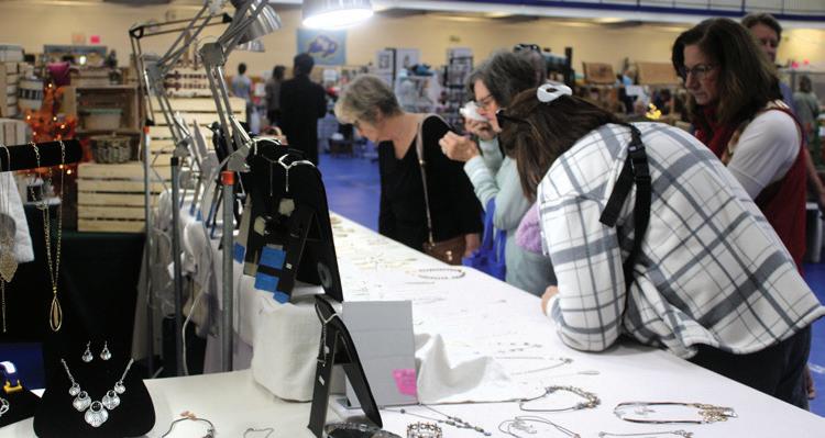 Guests gaze at the jewelry on display Shelby Crawford stands by her bear creation