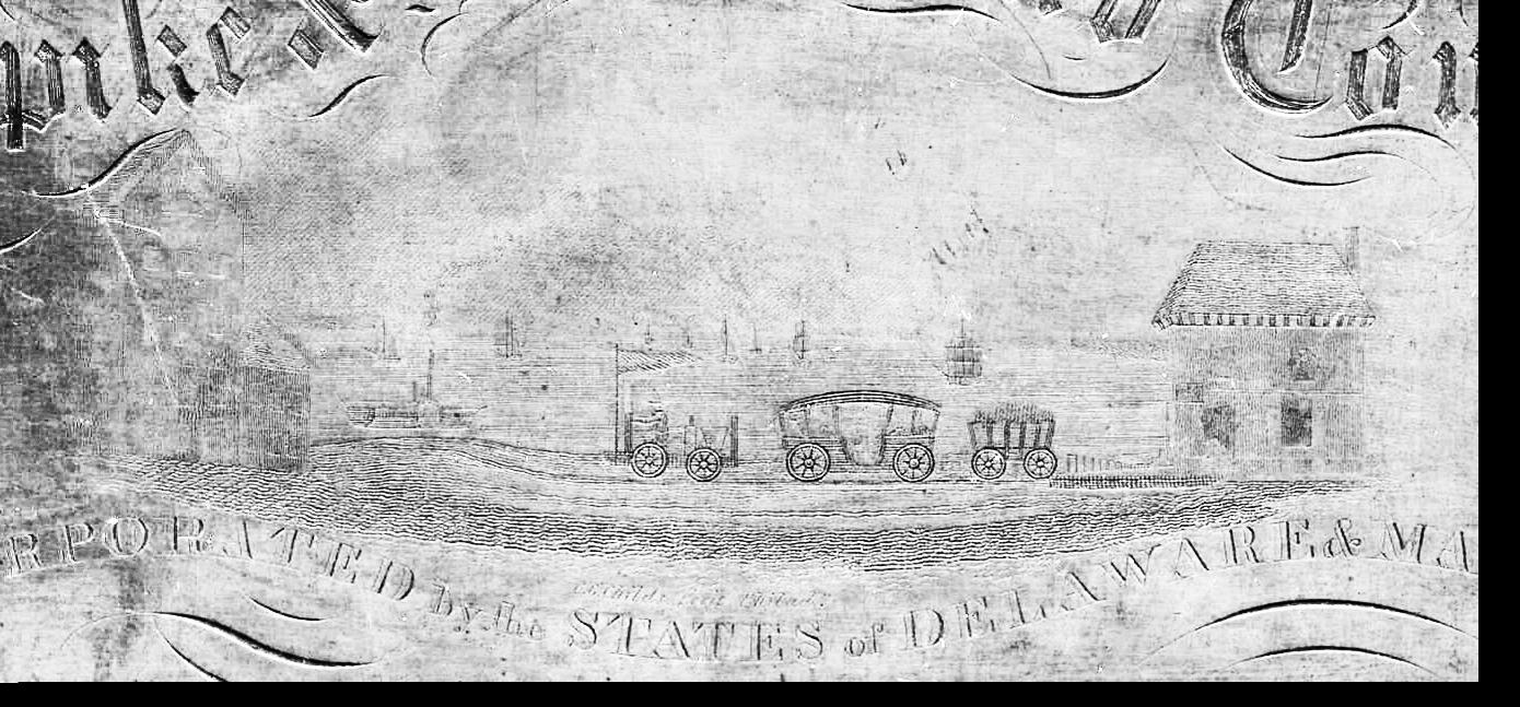 Detail of printing plate for stock certificates of the New Castle & Frenchtown Turnpike & Railroad Company. Collection of New Castle Historical Society.