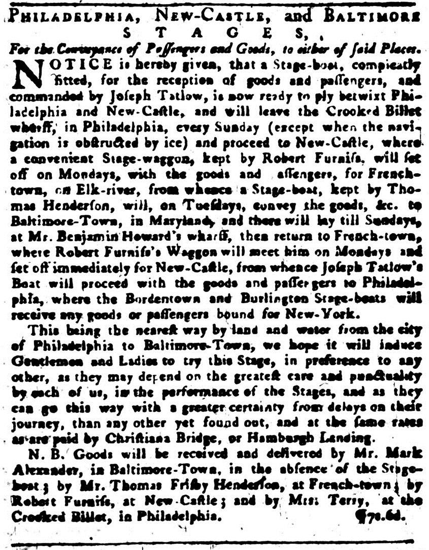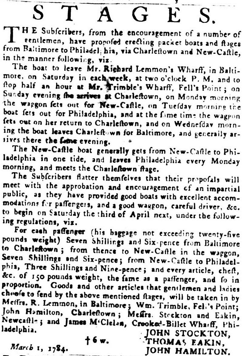 As you may imagine, the travel experience for New Castle residents and visitors, as well as all travelers in colonial America and the early United States, was dramatically different than what we experience in the United States today.