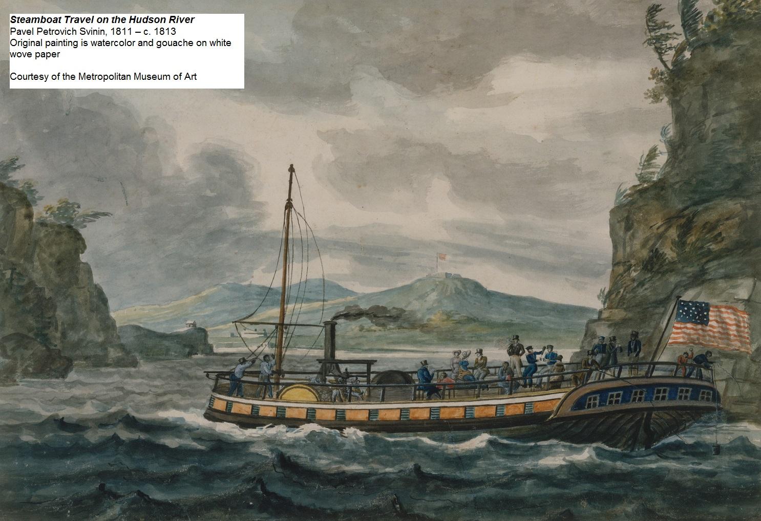 Water travel was always important in early America, but relied on either human, animal, or wind power for propulsion. That changed in the late 18th century with the invention of the steamboat. The first man to build a steamboat in the United States was John Fitch. In 1787, he successfully launched his 45-foot steamboat on the Delaware River ushering in a new era of travel. For much of the next century steamboats became the preferred method of travel on the nation’s rivers, canals, and coastal waterways