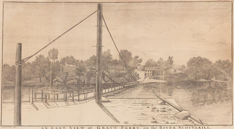 I left Philadelphia on the 13th of January, 1785, in a stage, and crossed the Schuylkill over a floating bridge of three hundred feet in length, jointed with large hinges, by which it was elevated and depressed in the action of the tide. This bridge was constructed by the British in '78. Our road run parallel to the Delaware. We found the country pleasantly occupied by spacious farms, with excellent enclosures, and orchards, and adorned by villages and country seats.