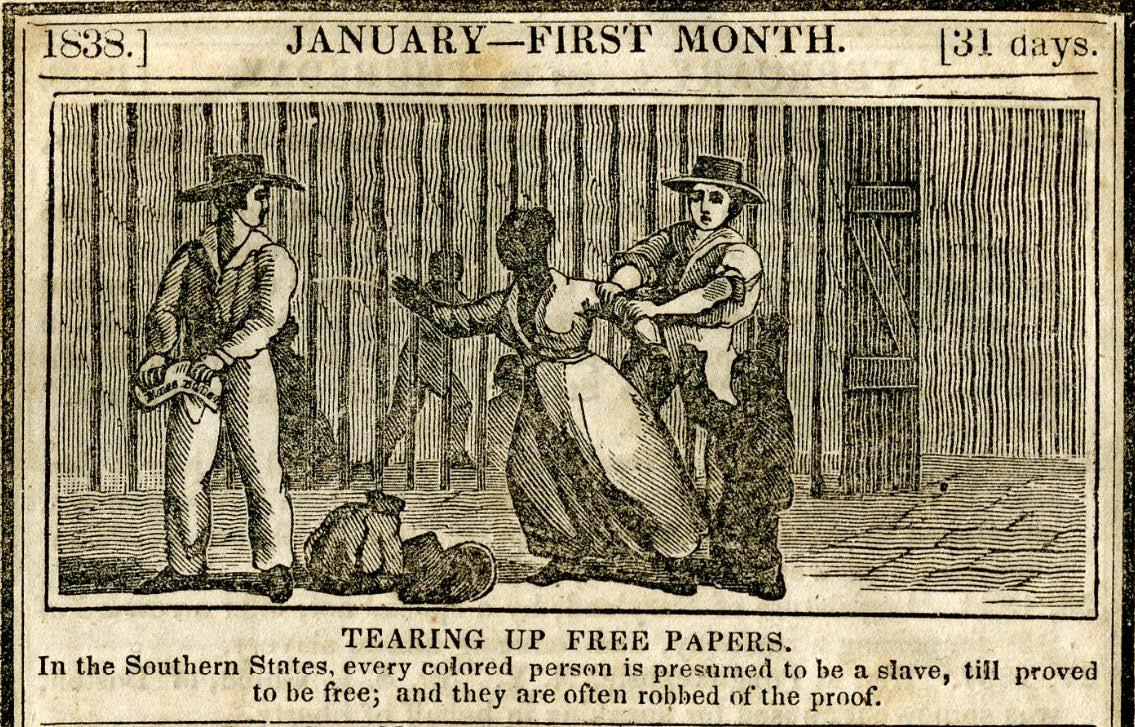 “If any suspicious colored person shall be taken up travelling in or through this government without having a sufficient pass signed by some Justice or proper officer of the place from whence he or she came, approved and renewed by some Justice of the Peace in the parts through which such person hath travelled, or shall not otherwise be able to give a good and satisfactory account of him or herself to the justice before whom he or she shall be brought, such person shall, by the said Justice, be committed to the gaol [jail] of the county where he or she shall be taken up and be deemed to be and dealt withal, as a runaway servant.”