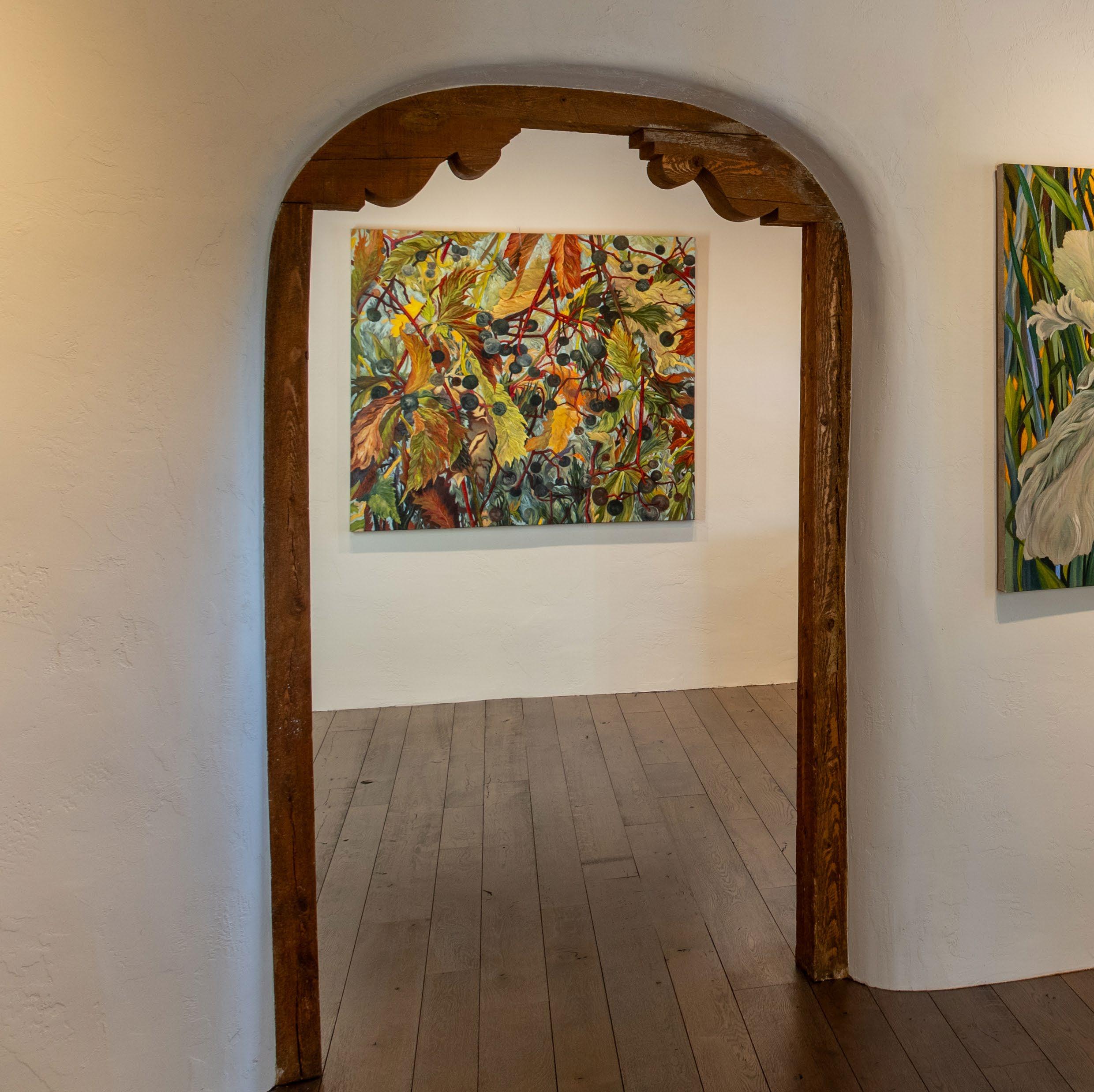 For nearly five decades, Jane Abrams has lived & worked in the village of Los Ranchos, a quiet community nestled in the Rio Grande valley near Albuquerque, New Mexico. A lifetime of travels has seen Jane explore the globe, wandering through ancient ruins and jungles of Mexico and Central America and along riverbanks in India. Other journeys have taken her to the mountainous regions of China and Thailand, as well as to the Netherlands and Spain. She has also spent countless hours walking the paths through the bosque along the Rio Grande, along acequias, desert spaces and familiar fields near her New Mexico home. The widely varied foliage of these diverse locales serves as her inspiration, empowering her to create richly detailed paintings of botanical subjects. Her imaginative paintings are often wild in their complexity, with an atmosphere of otherworldly locales.