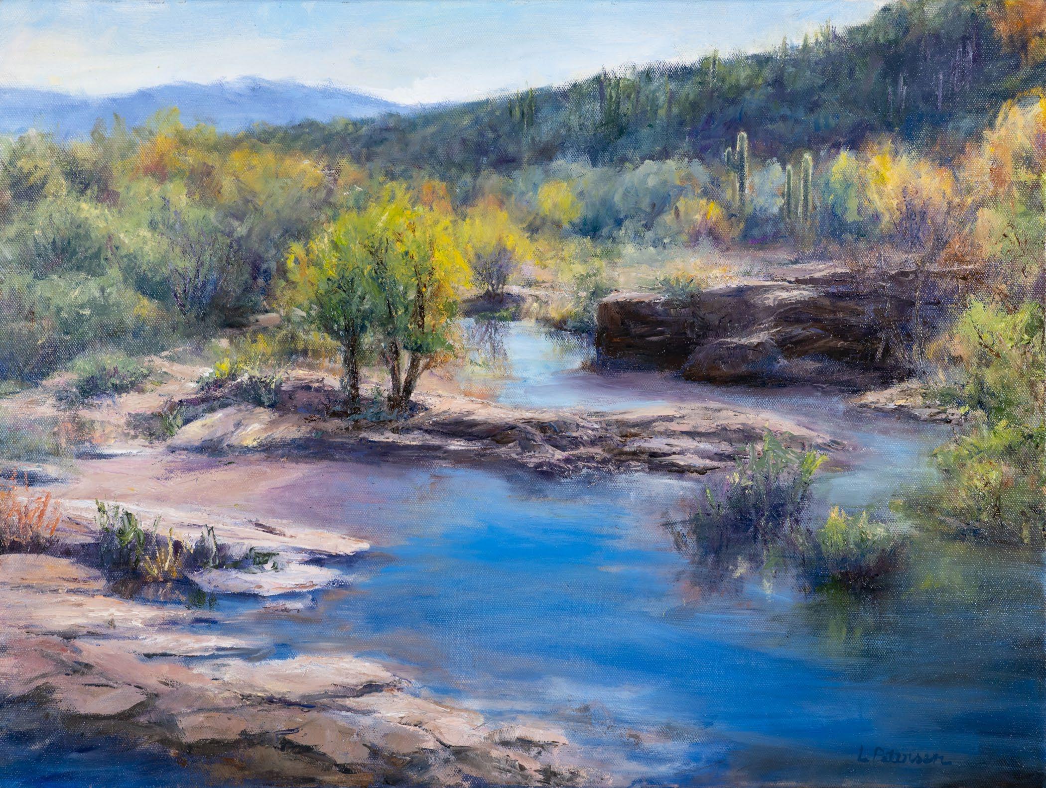 Themost traditional of our artists at New Concept Gallery, Linda Petersen renders the distinct landscapes of New Mexico, Colorado, Utah and Arizona in warm, rich tones. Her oil paintings convey the beauty of the American southwest with grace, showcasing our adobe architecture, crystalline blue skies, sculpted rock formations and oasis-like river valleys to perfection.