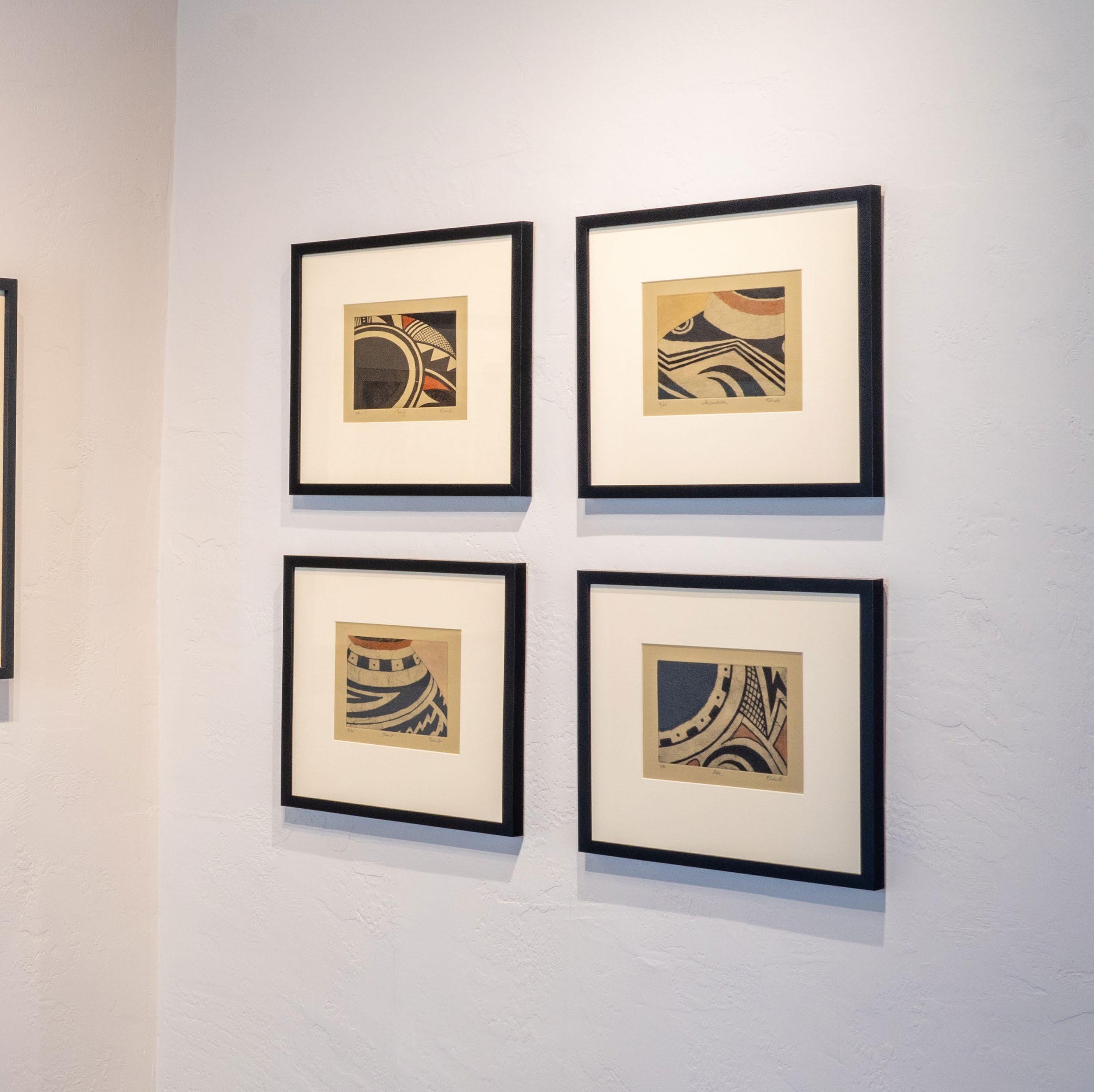 For this intimate one-room show, Julia Roberts will be showcasing the works that first brought her acclaim here in Santa Fe: her exquisite hand-pulled prints inspired by the traditional motifs of Pueblo pottery. Roberts’ prints pay homage to the patterns and themes of indigenous artisans, while being careful not to copy their original designs. Before settling in Santa Fe in 2006, Julia lived in Europe for 16 years, producing her art in various ateliers and master classes in Paris and London. She spent many productive years working with master printmakers at the London Print Studio. Her masterfully executed handpulled prints show the influences of Asian and European printmaking methods, as well as the distinctive palette of her adopted home in the American Southwest.