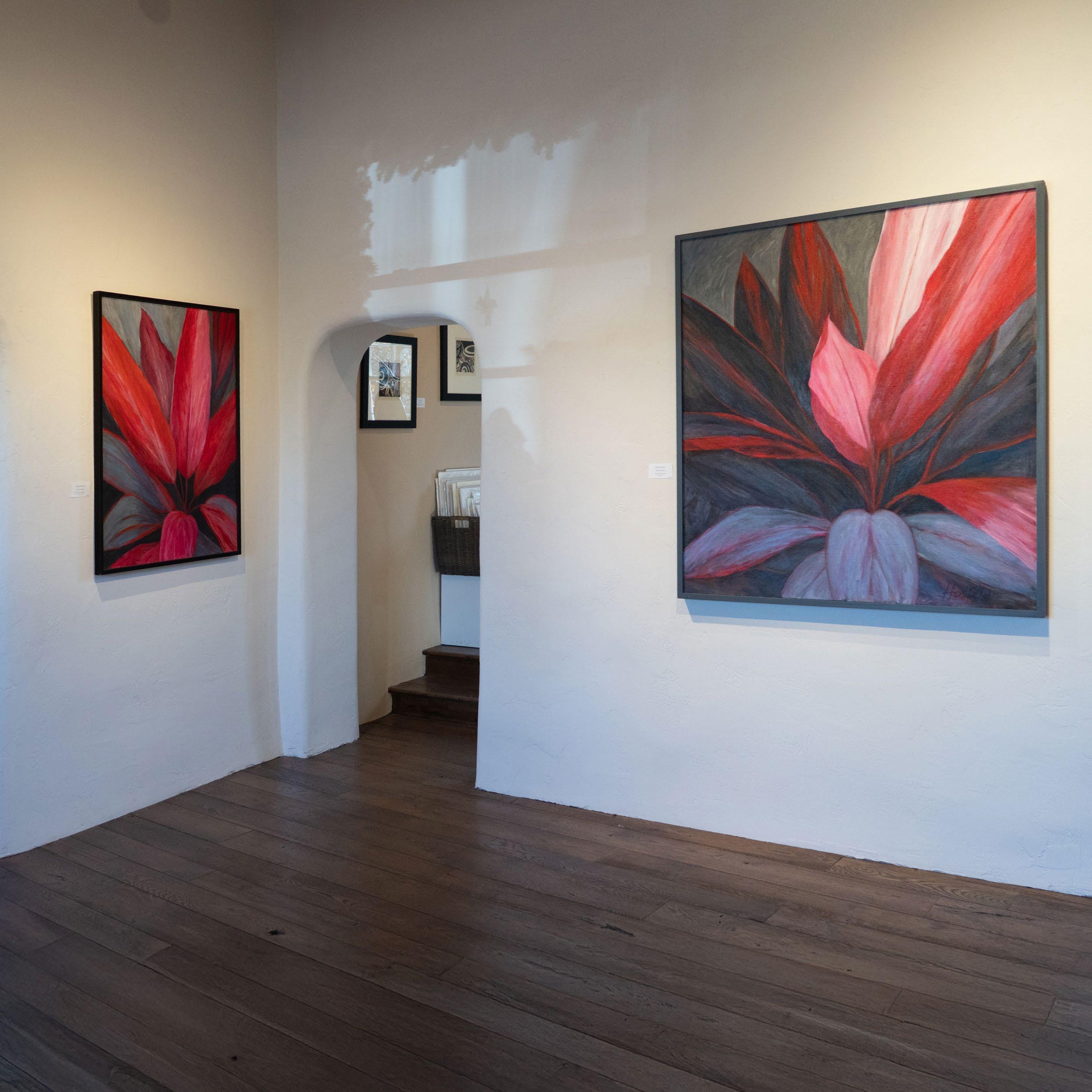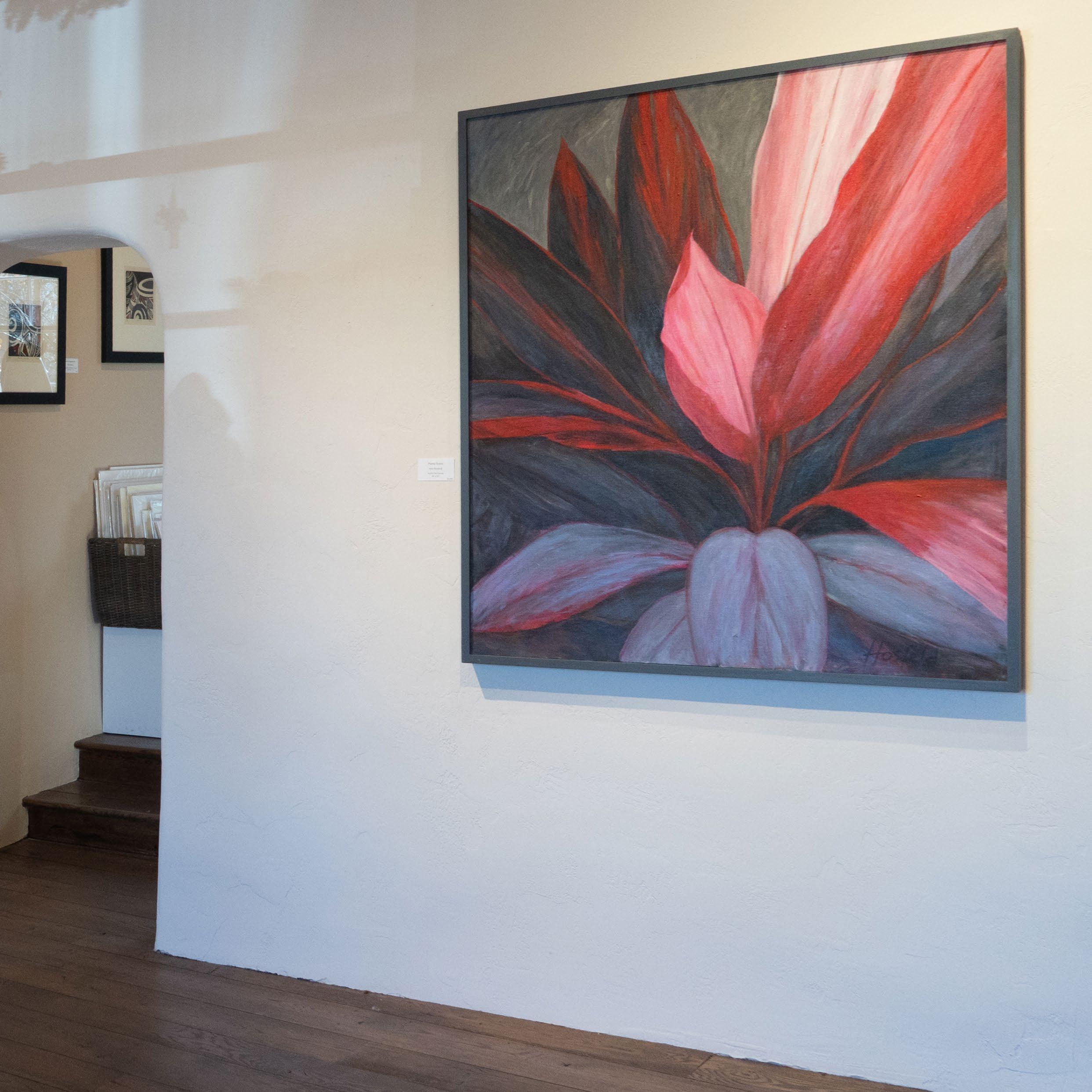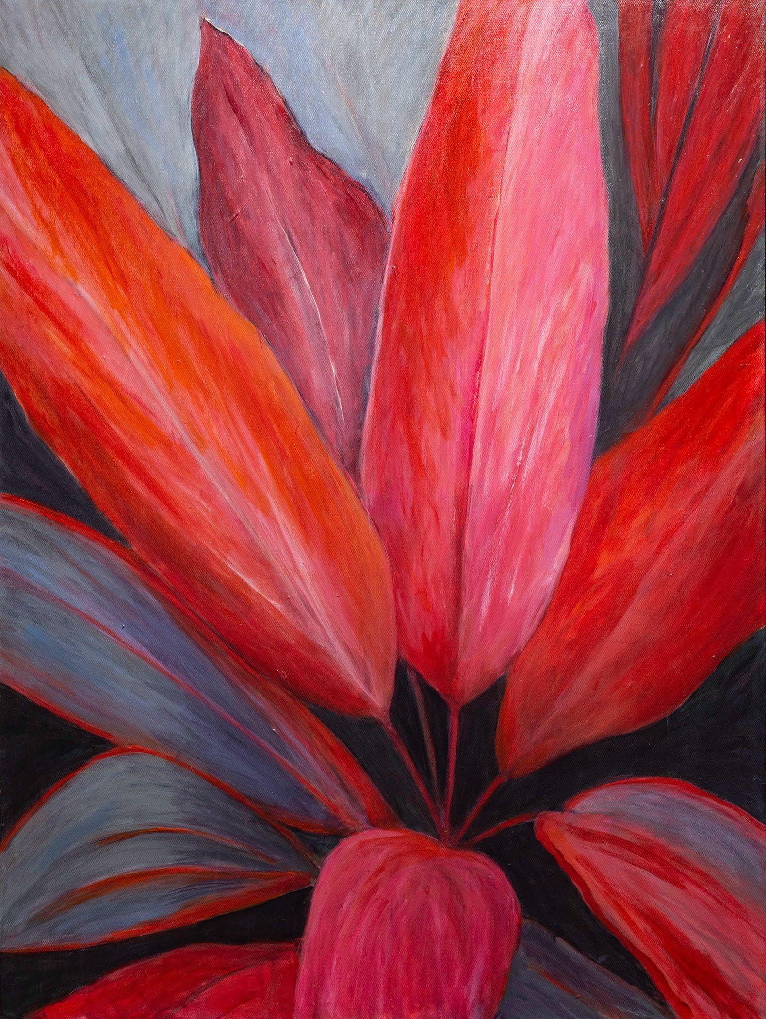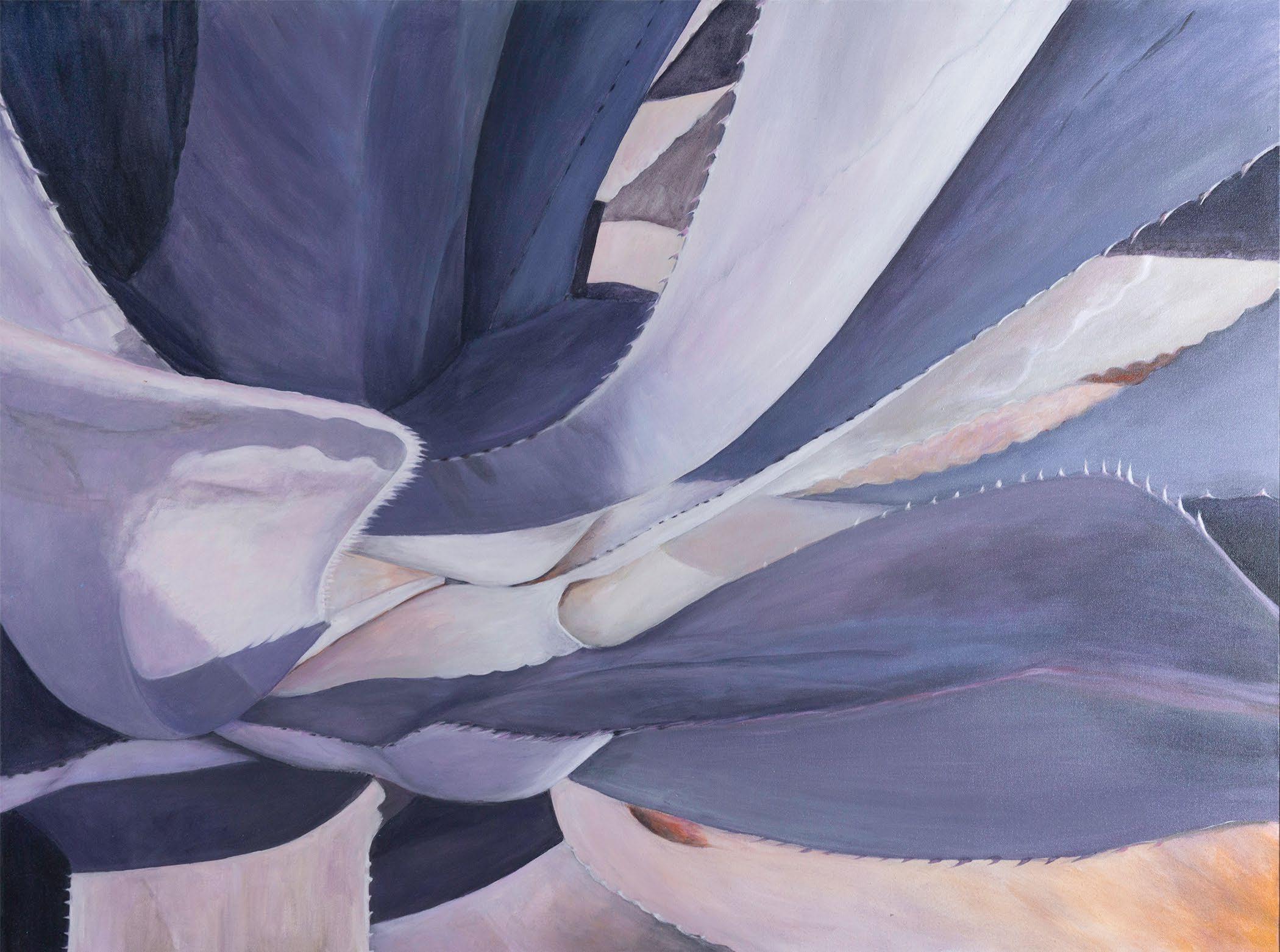 After studying under abstract expressionists in New York City, Ann Hosfeld moved to Los Angeles, where she found artistic inspiration in the abundant tropical plants. Trips to Mexico led her to start painting banana leaves. The bold play of light and shadow created by the giant leaves often led to the creation of richly abstracted paintings. Over time, she studied and painted a wide variety of botanical subjects, with a particular focus on the agave plants she photographed in Arizona.