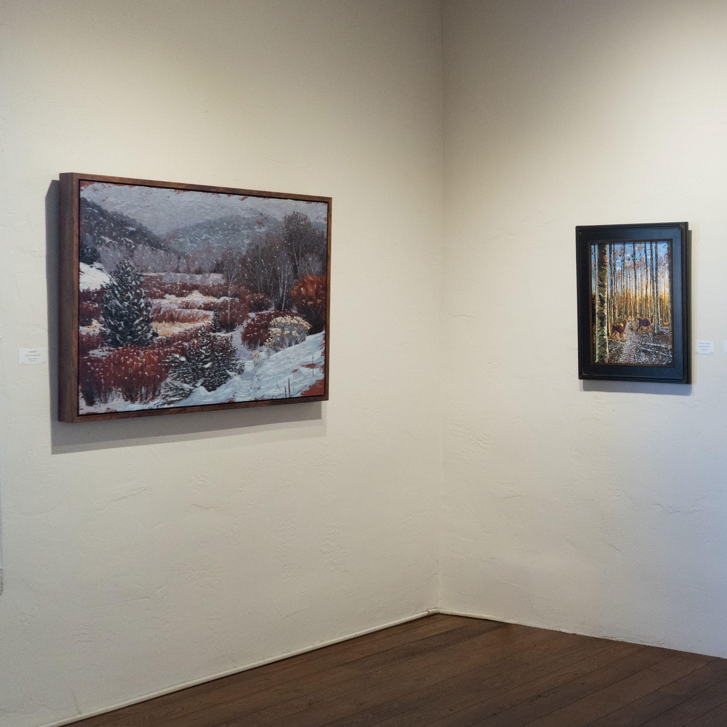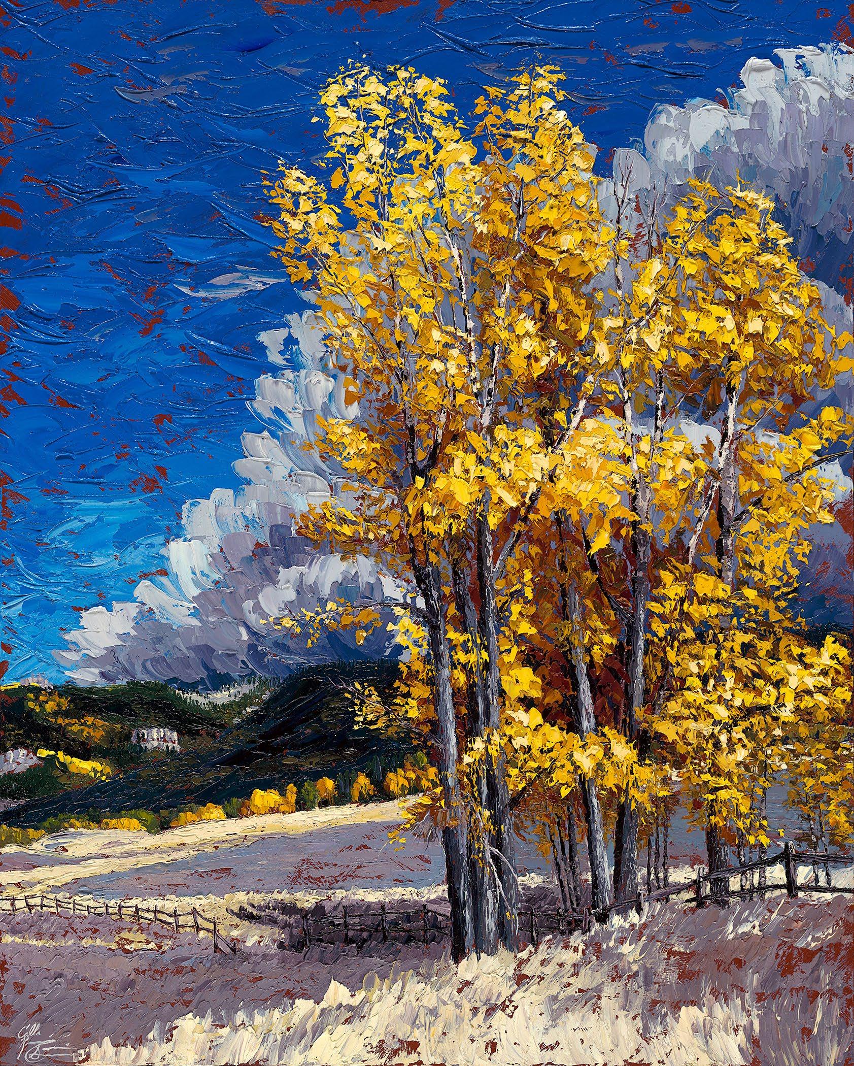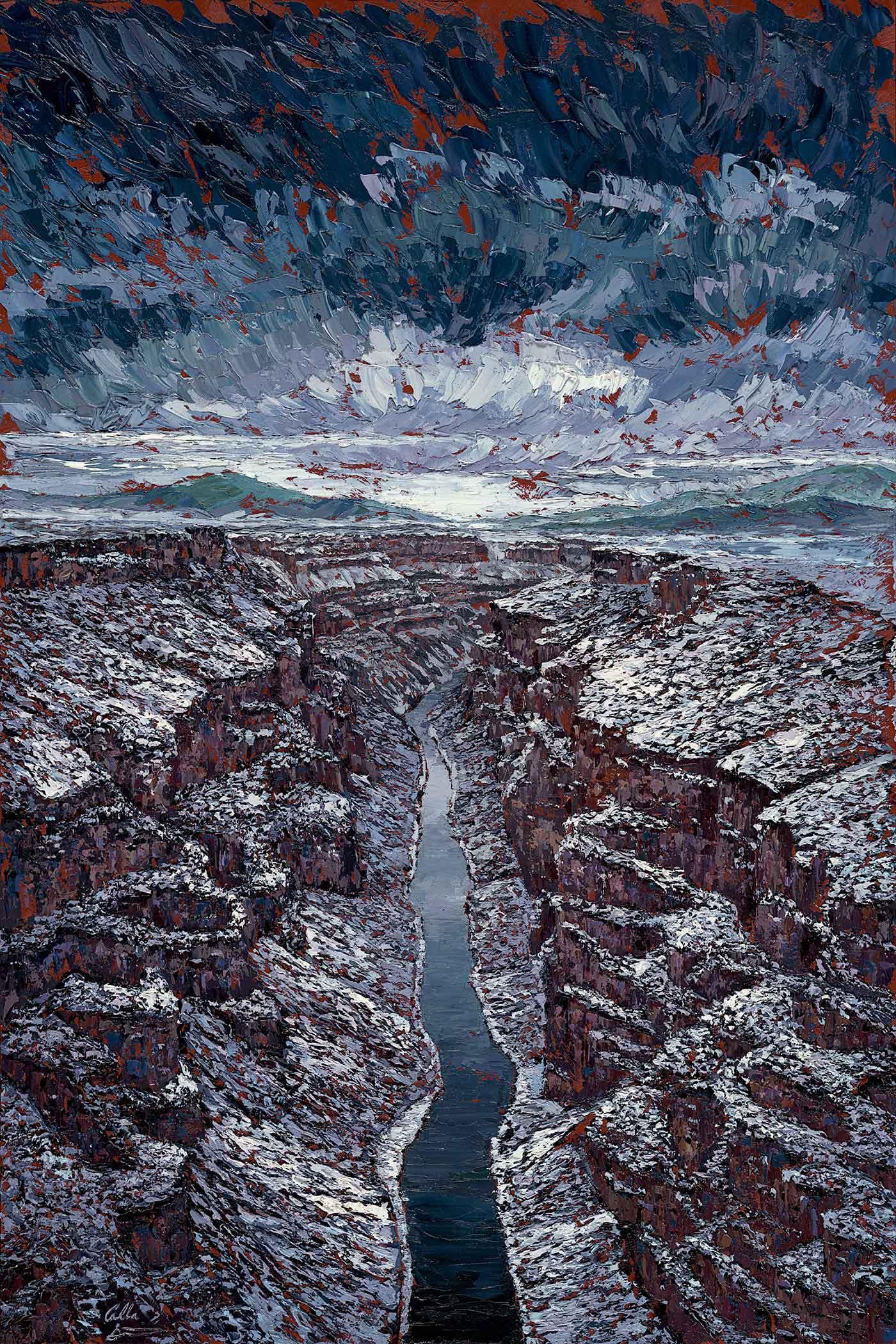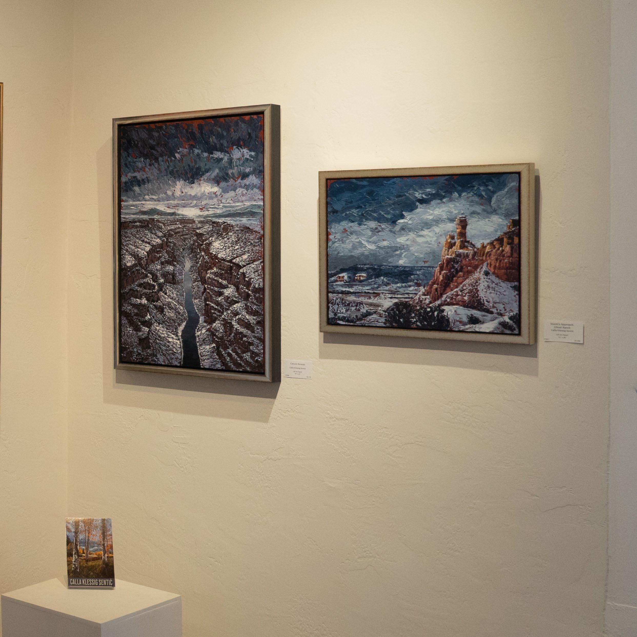 Into the Wilds invites you to wander through painted landscapes where autumn gold deepens into winter’s hush. These paintings are prayers in oil—each a meditation on healing, the gentle transformation found in changing seasons, and the quiet strength rooted in nature’s embrace. In this collection, stormy skies brood and break, reminding us that even amid darkness, there is hope—after every tempest, a clearing where light pours in and renewal takes root. Other pieces within this body of work offer calm, a reverent pause to honor the beauty and solace found within the rhythms of the land. This collection reflects Calla’s enduring reverence for the wild— from autumn’s glowing hues to the hush of snowfall—inviting you to witness the cycles of letting go, finding grace, and being gently remade.
