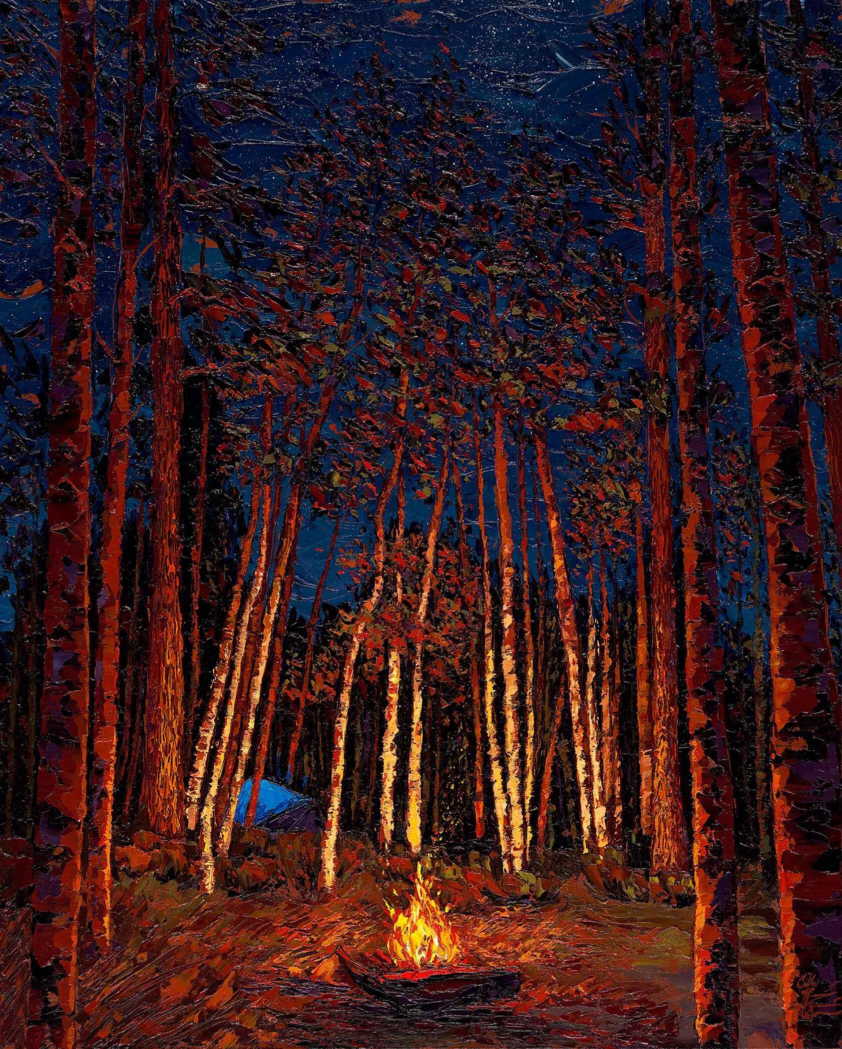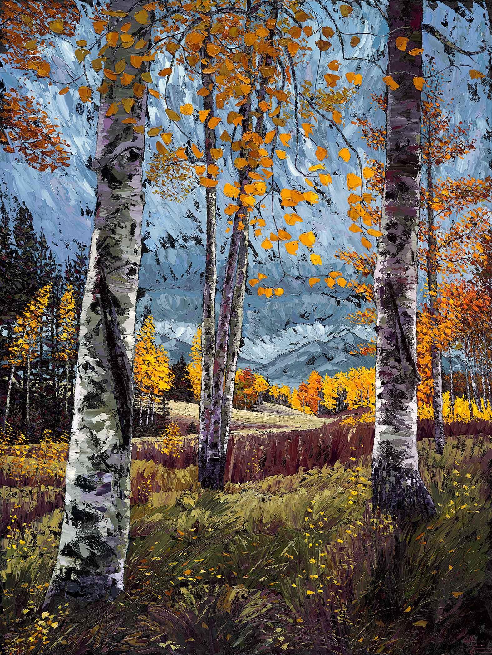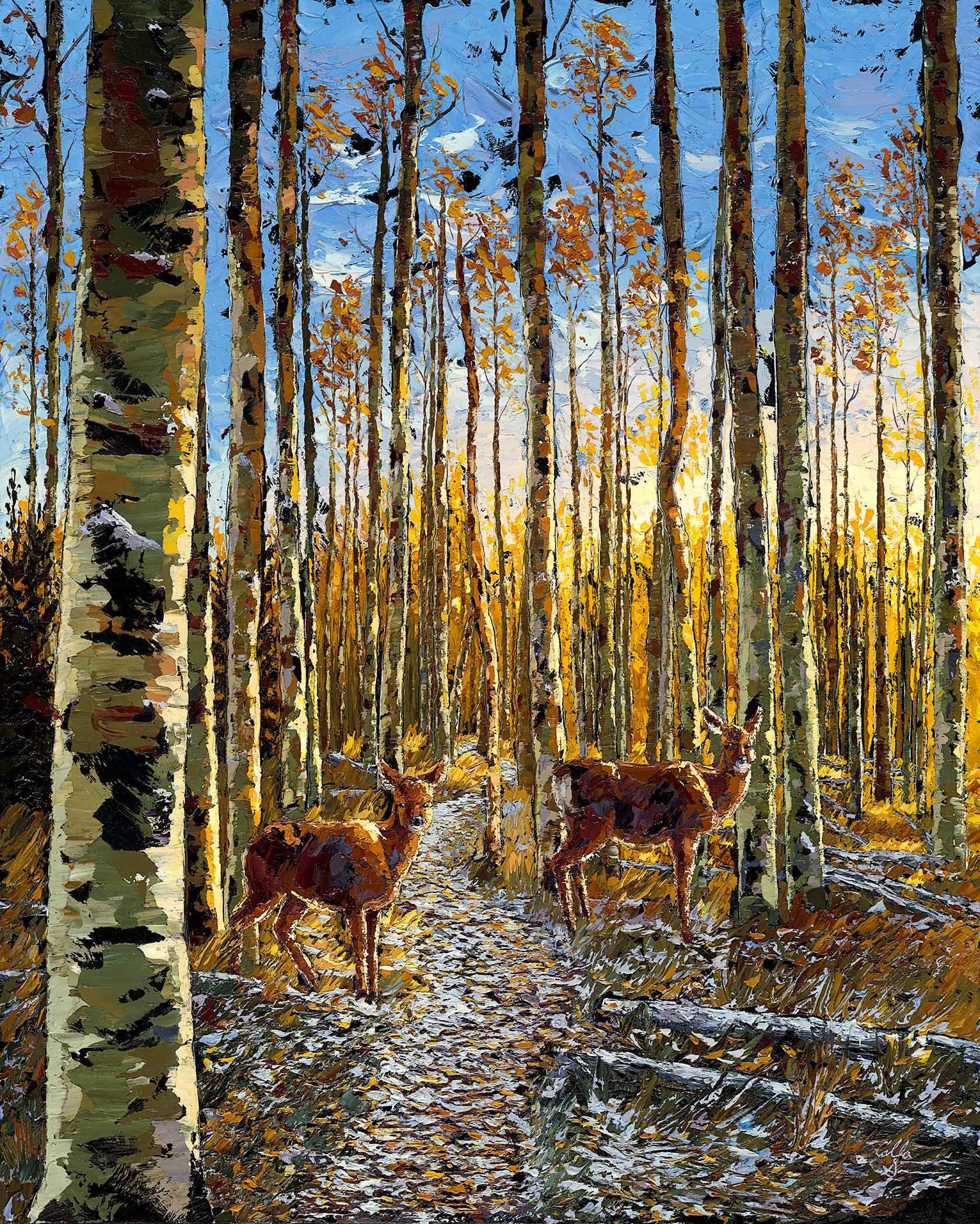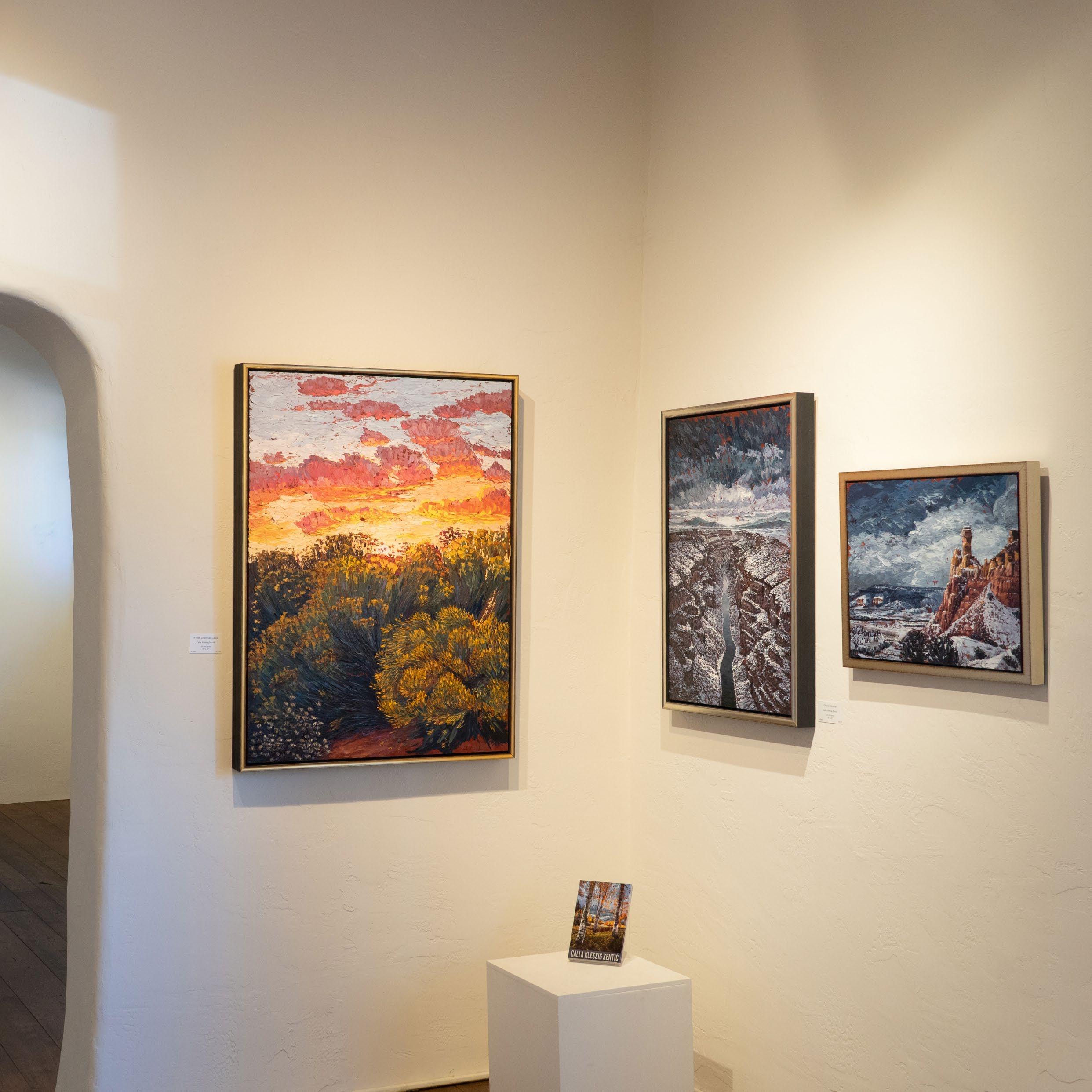 Into the Wilds invites you to wander through painted landscapes where autumn gold deepens into winter’s hush. These paintings are prayers in oil—each a meditation on healing, the gentle transformation found in changing seasons, and the quiet strength rooted in nature’s embrace. In this collection, stormy skies brood and break, reminding us that even amid darkness, there is hope—after every tempest, a clearing where light pours in and renewal takes root. Other pieces within this body of work offer calm, a reverent pause to honor the beauty and solace found within the rhythms of the land. This collection reflects Calla’s enduring reverence for the wild— from autumn’s glowing hues to the hush of snowfall—inviting you to witness the cycles of letting go, finding grace, and being gently remade.