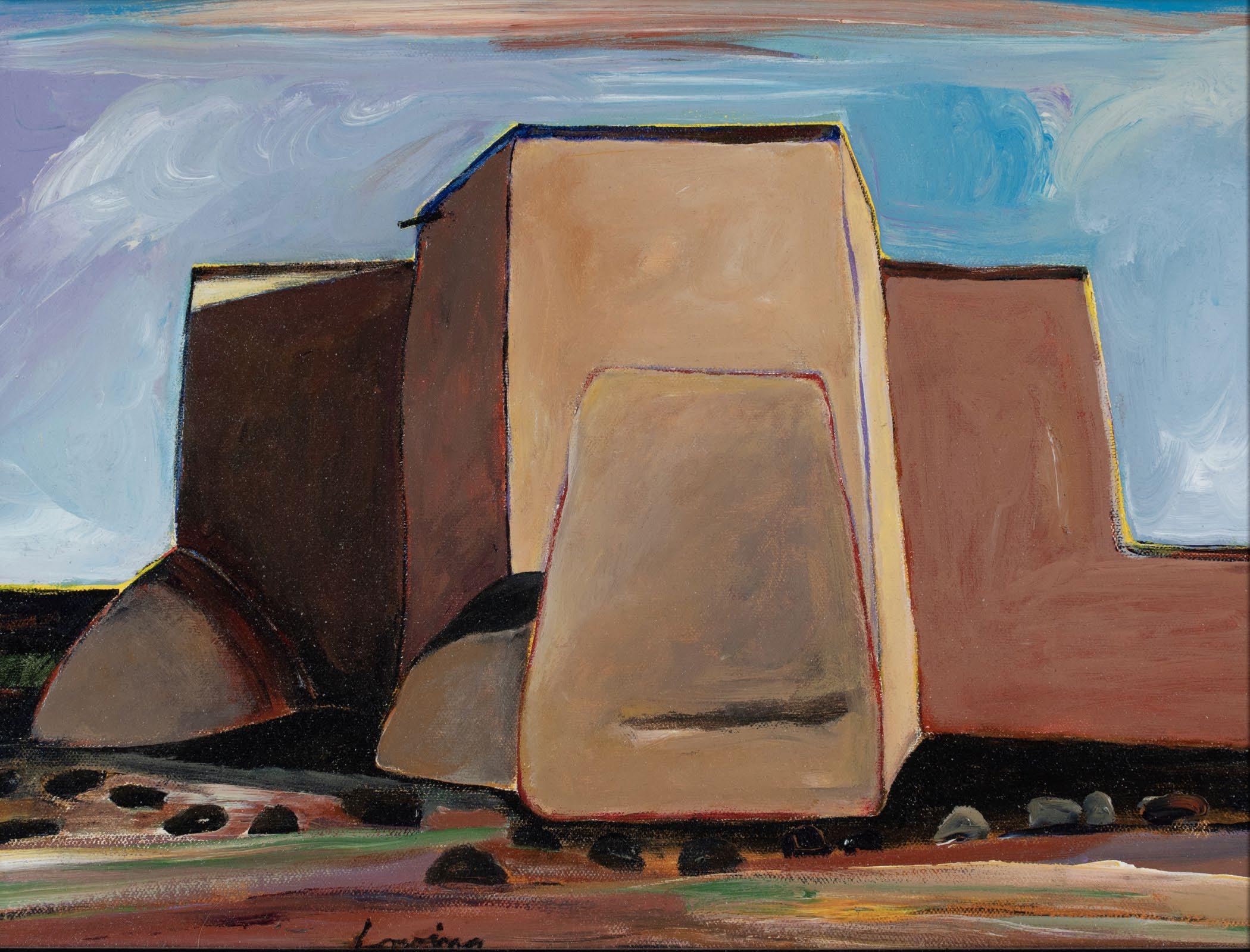 Reg Loving was a vital member of the New Mexico art community since the mid-1970s. His work is widely held by museums, public institutions and private collectors alike. Whether he was portraying iconic New Mexican churches, creating highly stylized southwestern landscapes or thought-provoking abstracts, Loving’s distinctive style and bold use of color are the common