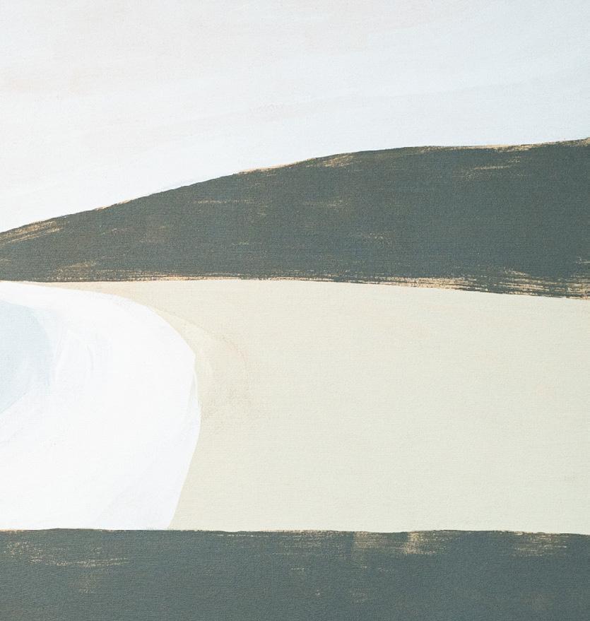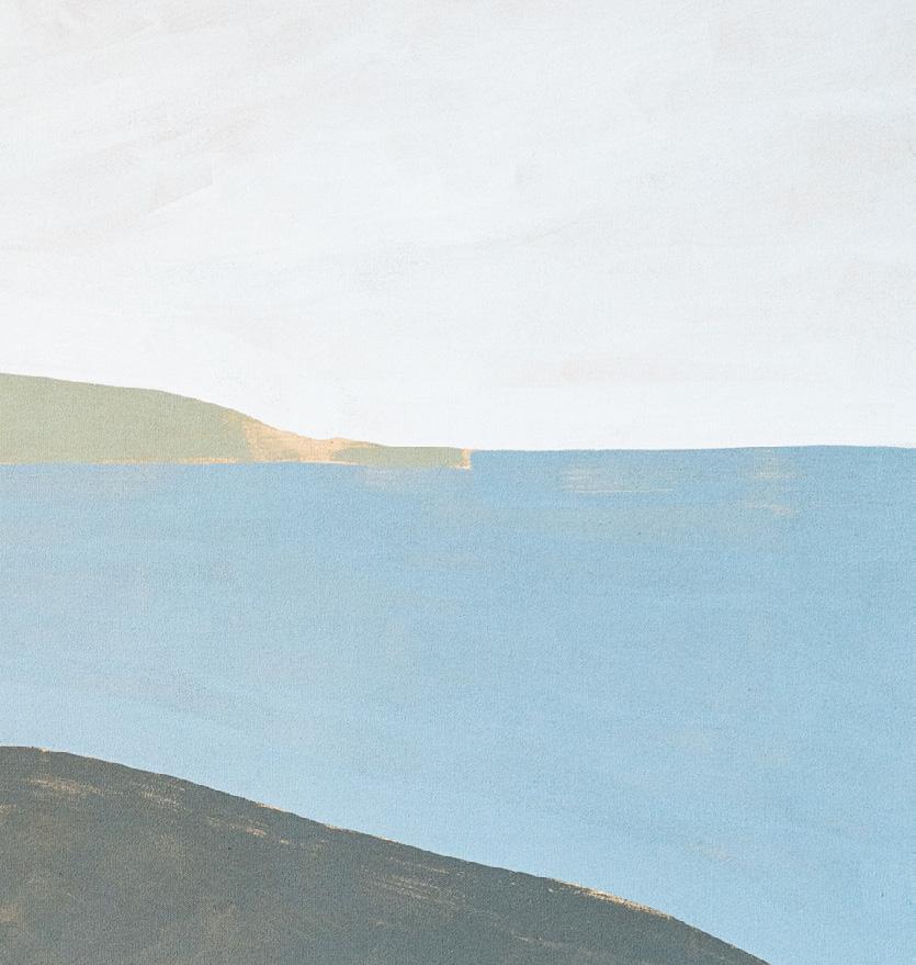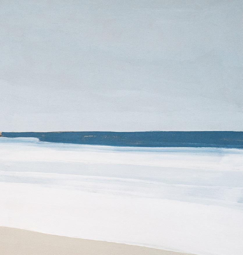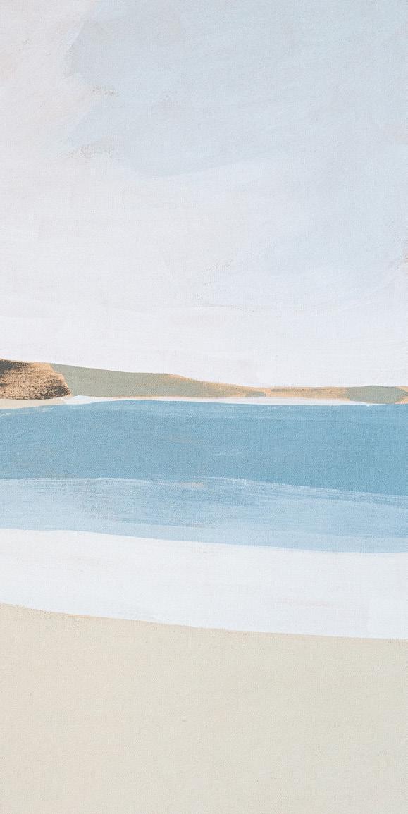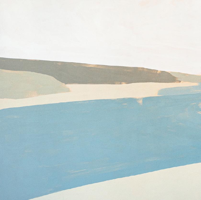 ‘Some works have the flatness of still water, of low contrast light between the sea and shore, and the playful and poetic forms of the river mouth with its white sand and warm blue waters. Others encapsulate the brightest energy, the movement of the sky and its reflection on the water below.’