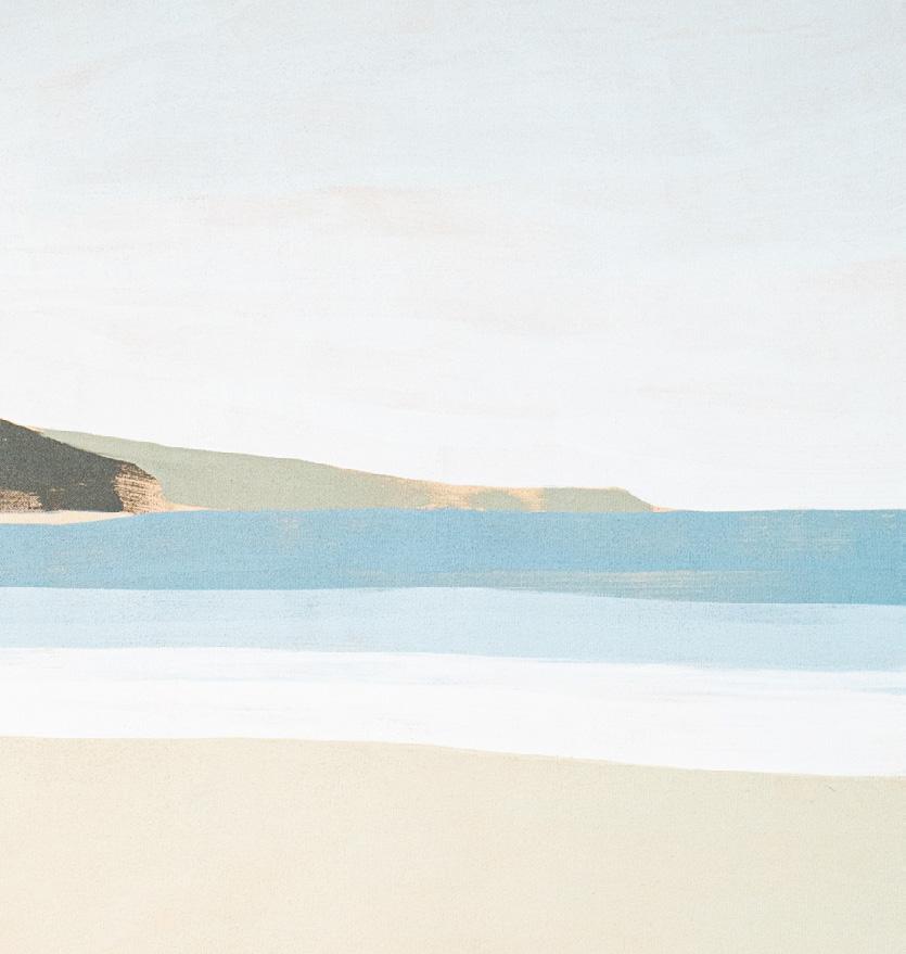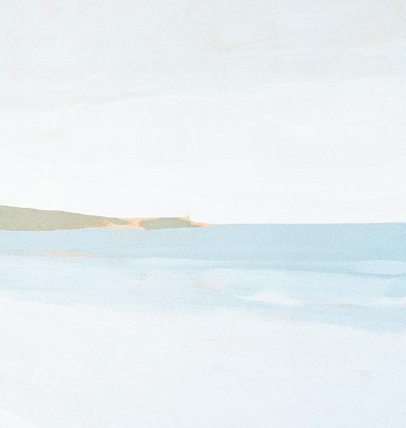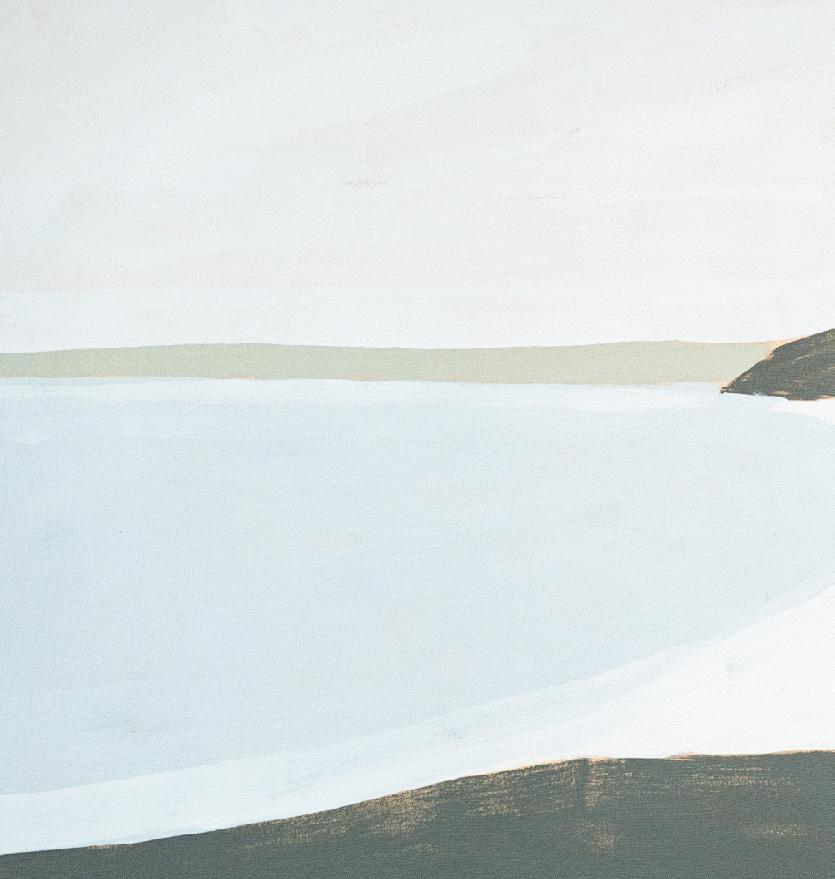 Sarah Woods takes a considered, almost meditative approach to painting the landscape. In a palette drawn from the cool northern light of the Cornish peninsula, she captures the subtleties of tone and atmosphere that are unique to the West Coast: granite headlands, wide tidelines and sweeping curves of silver sand are expressed through tranquil brushstrokes, and a simplification of the essential, painterly elements of colour, space and form.