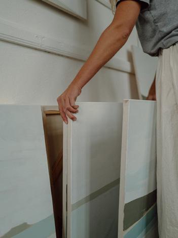 ‘Each painting in this collection holds a feeling of calm within the landscape - an intimacy between the shore and studio, a shift in hues and subtle changes of palette - painted with immediate and gentle strokes that signify a feeling of the coastline: each canvas is a space for my inner and outer worlds to meet.’