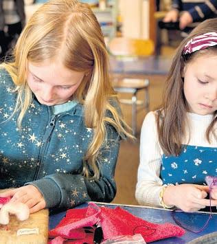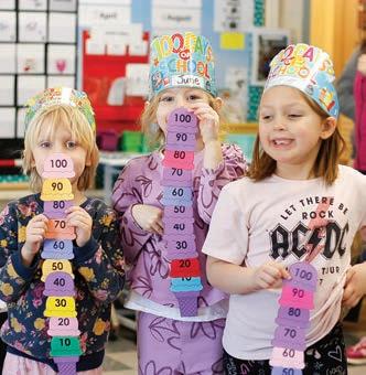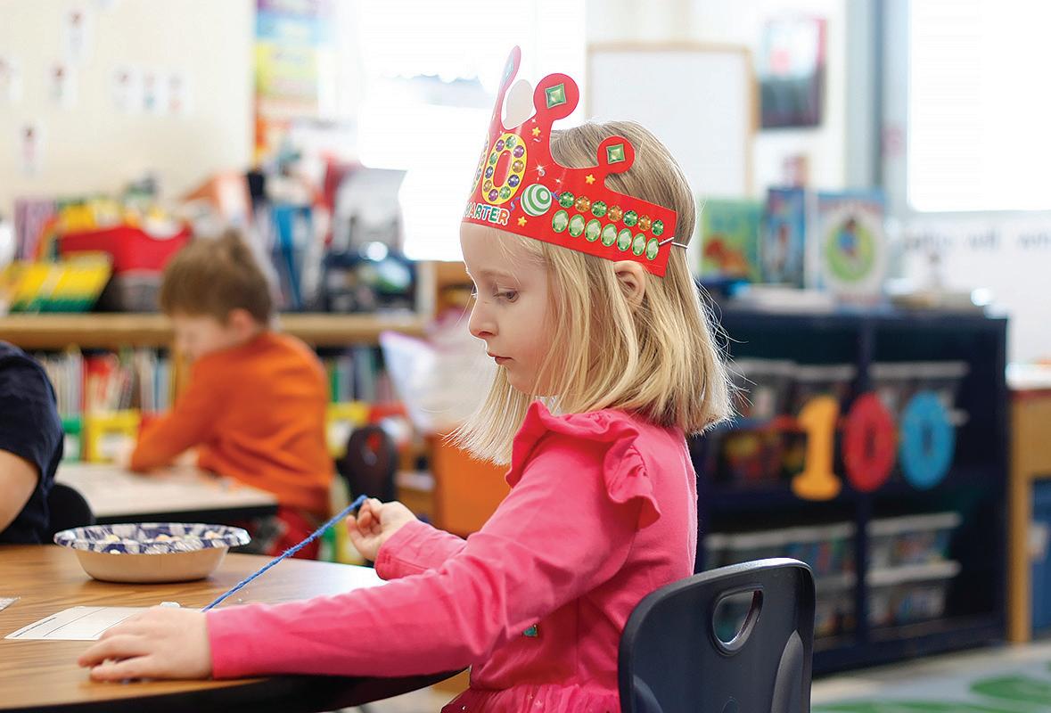 the end of the day. “Our girls and their friends have been riding the bus since Kindergarten, and just like on campus, the older kids look out for the younger ones,” Scott says. “It’s made our lives as parents much easier!” Daughter Alana, now in Grade 5, names the winter sports program as her favorite school activity, while her sister Josie, also in Grade 5, loves the yearly musical and play, her violin class, and Monday “community time,” when the whole school gathers for special events. “It’s like we’re one big family,” Josie says.