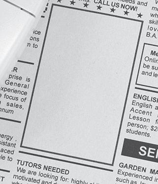 INSERT ADVERTISING: We can handle that for you. www.shoppersguideinc.com NO SCAMS, no commissions. Shopper’s Guide classifieds are the deal of the century! GET FIT for advertising! 1 column, 2 column, 3 column, and more! Call us: (413)-528-0095.