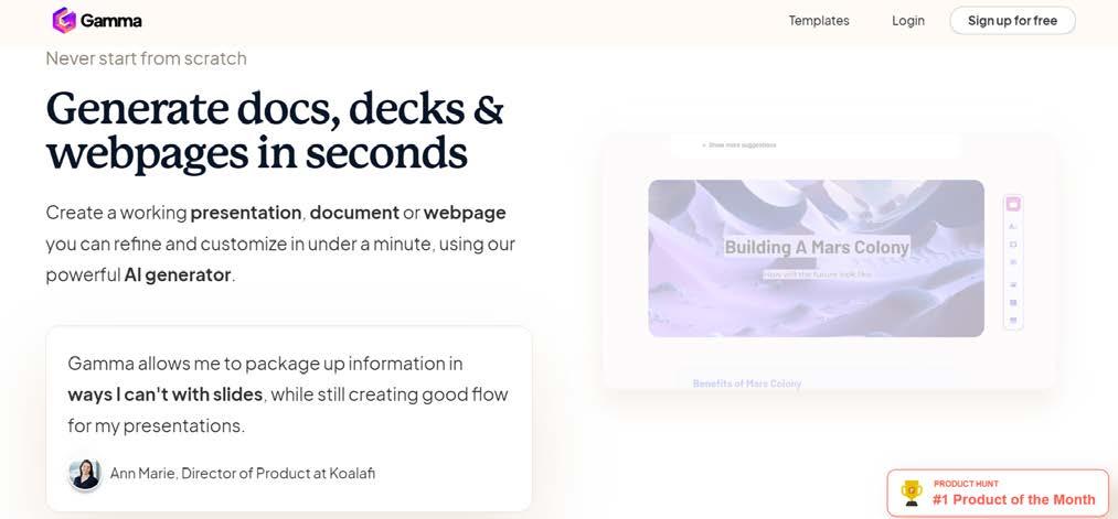 Gamma.app: Gamma.app is a flexible AI tool that can produce papers, presentations, and websites, simplifying content creation for teachers and students.