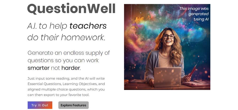 Questionwell.org: Questionwell.org is an AI tool dedicated to generating questions (including learning outcomes) about a topic a user inputs, which can be highly useful for educators when creating assessments and quizzes.